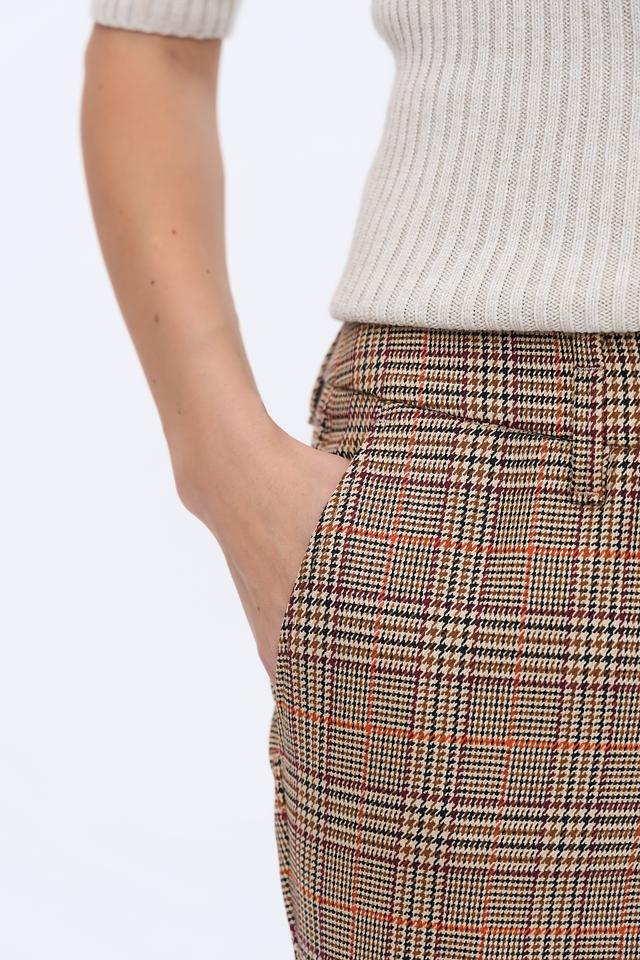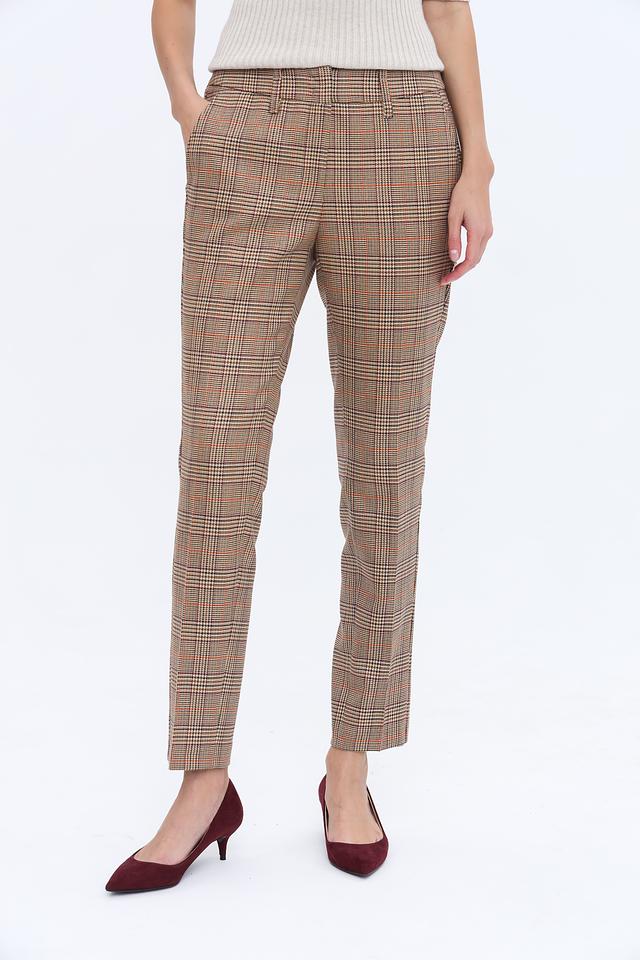 Женские брюки Gardeur коричневого цвета в классическую клетку. Модель выполнена из сочетания полиэстера, вискозы и эластана, обеспечивающего комфорт и хорошую посадку. Брюки идеально подойдут для создания стильного и элегантного образа. Состав: полиэстер 69%, вискоза 28%, эластан 3%