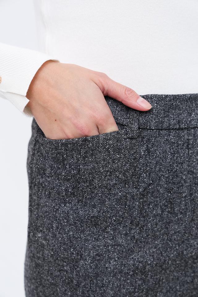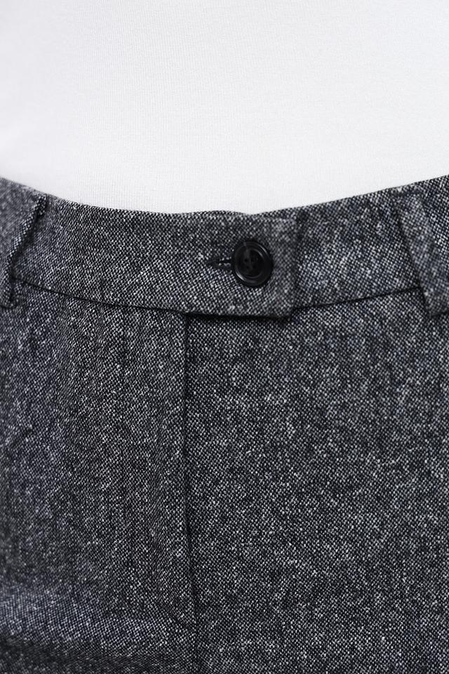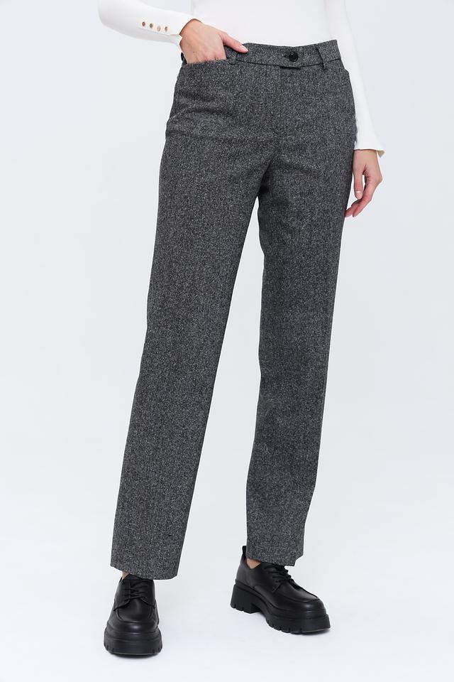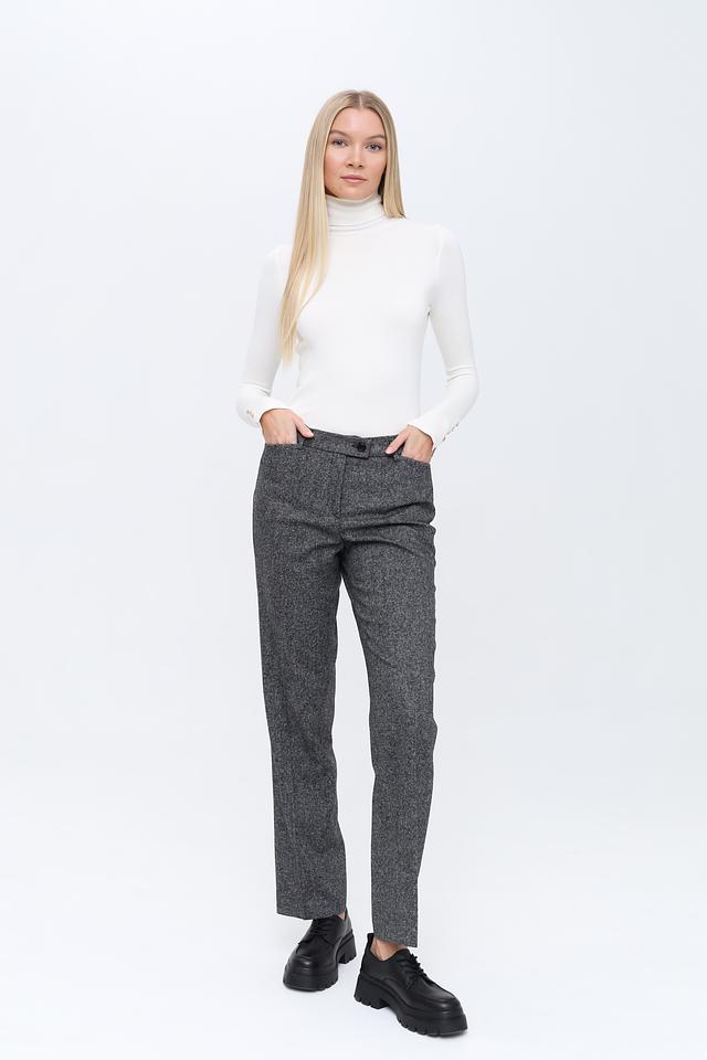 Брюки имеют прямой крой, который подчеркивает фигуру и обеспечивает свободу движений. Ткань состоит из шерсти (50%), полиэстера (29%), хлопка (20%) и эластана (1%), что гарантирует комфорт в носке и устойчивость к сминанию.