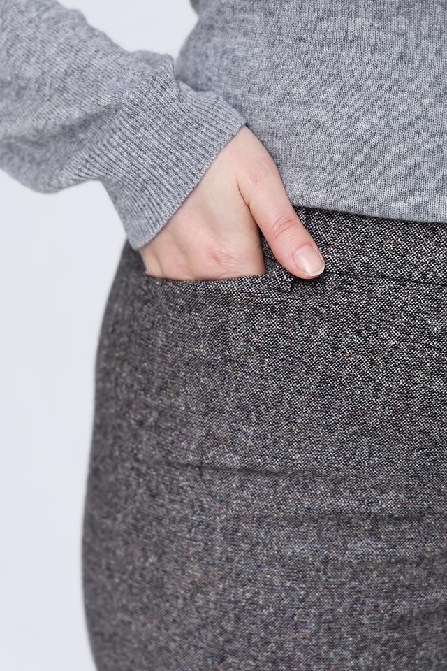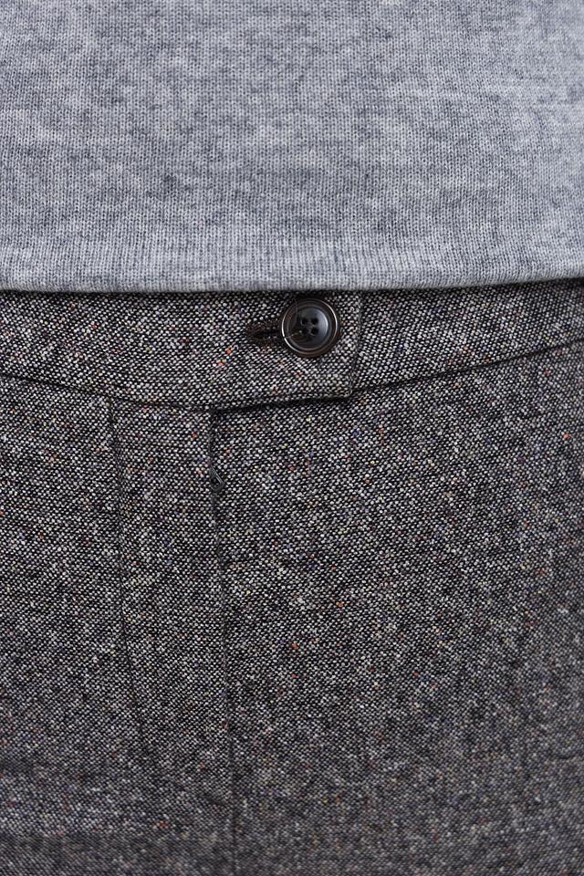 Брюки имеют прямой крой, который подчеркивает фигуру и обеспечивает свободу движений. Изготовлены из высококачественной ткани, в состав которой входит шерсть (50%), полиэстер (29%), хлопок (20%) и эластан (1%). Благодаря такому сочетанию материалов, брюки приятны к телу, хорошо держат форму и практически не мнутся.