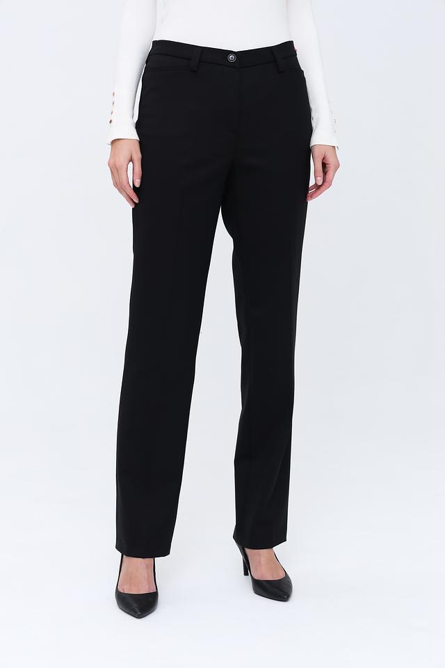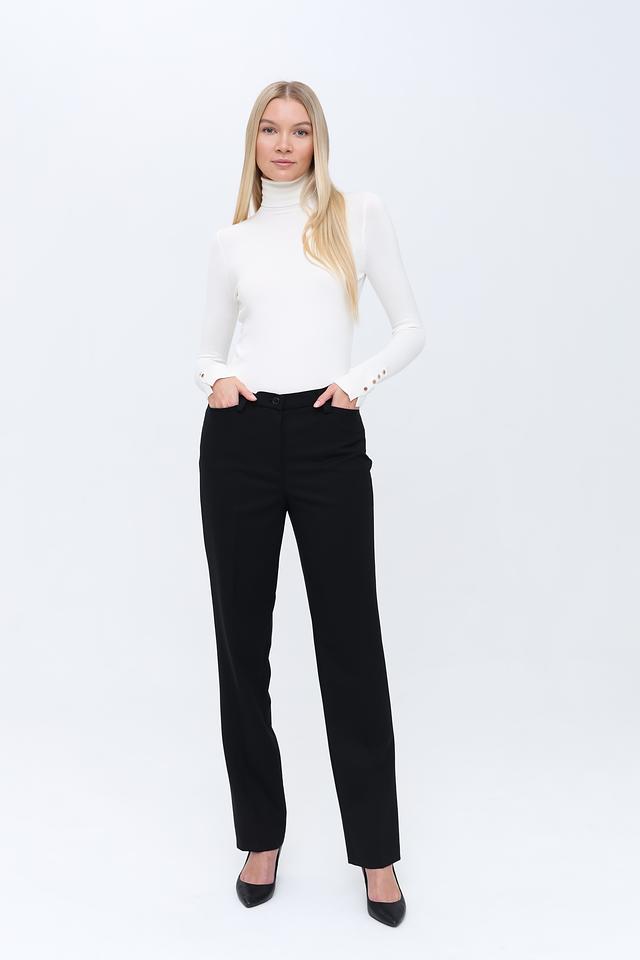 Брюки имеют прямой крой, который обеспечивает комфортную посадку и свободу движений. Высокое содержание шерсти (96%) в составе ткани гарантирует тепло и приятные тактильные ощущения, а добавление эластана (4%) обеспечивает небольшую эластичность и сохранение формы.