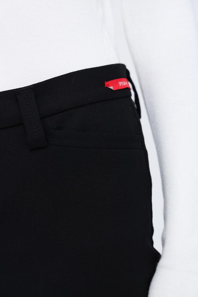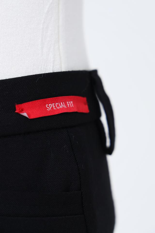 На задней части брюк расположены функциональные карманы с клапанами. Сбоку на поясе присутствует небольшая декоративная вставка с логотипом бренда. Данная модель станет отличным выбором для офисного стиля или для создания изысканного повседневного образа.