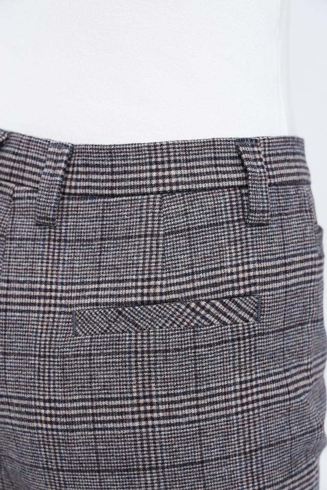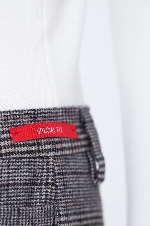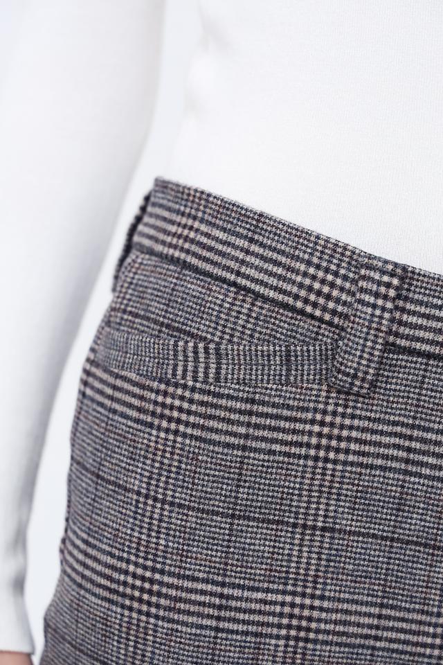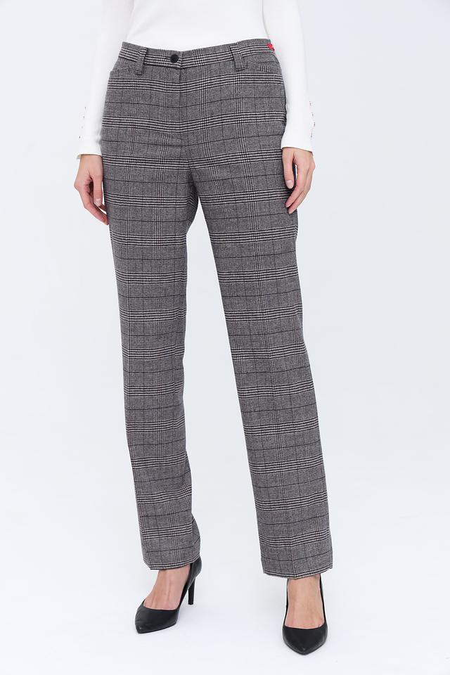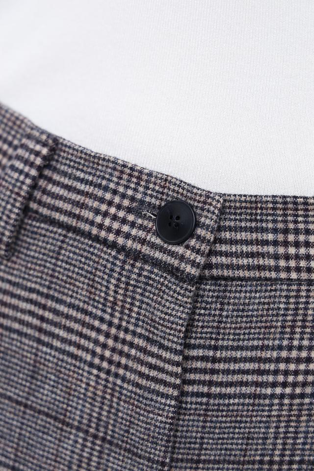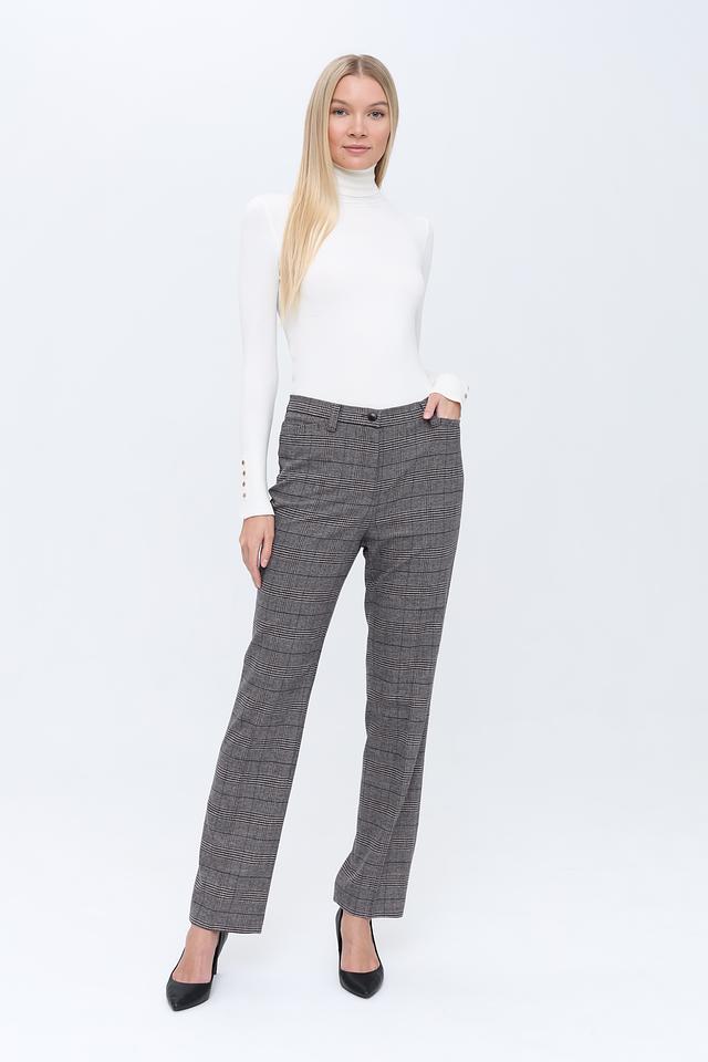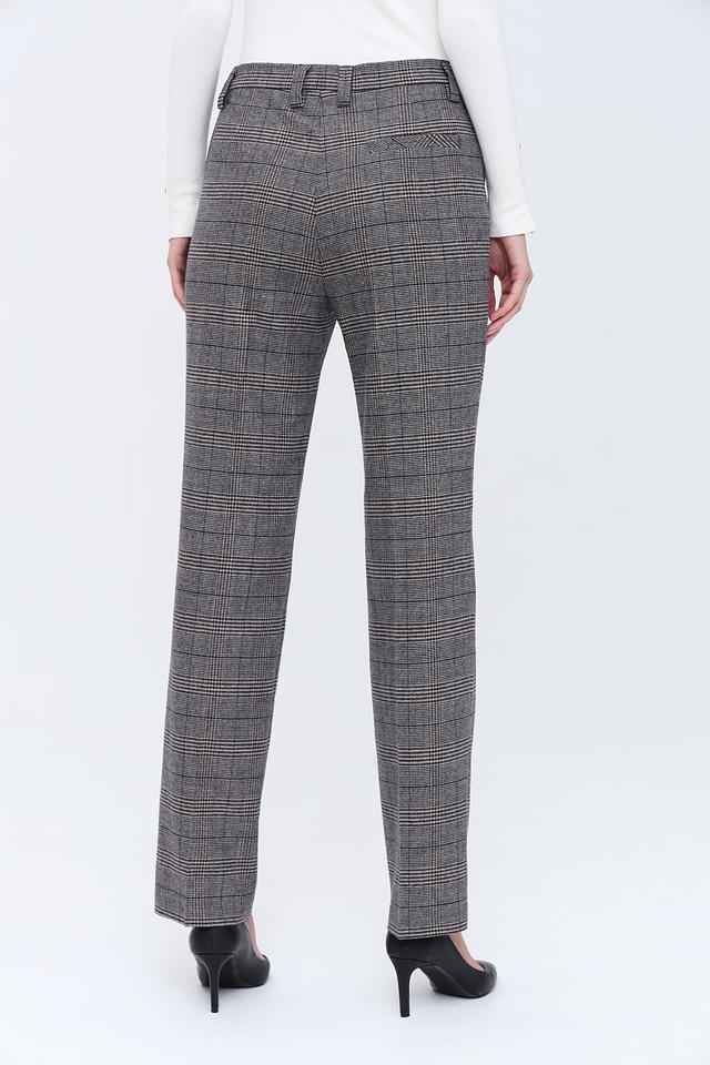Брюки имеют прямой крой, который обеспечивает комфортную посадку по фигуре. Пояс на пуговице добавляет им изысканности. Ткань с клетчатым принтом «Принц Уэльский» придает брюкам особый шарм и делает их универсальным элементом гардероба.