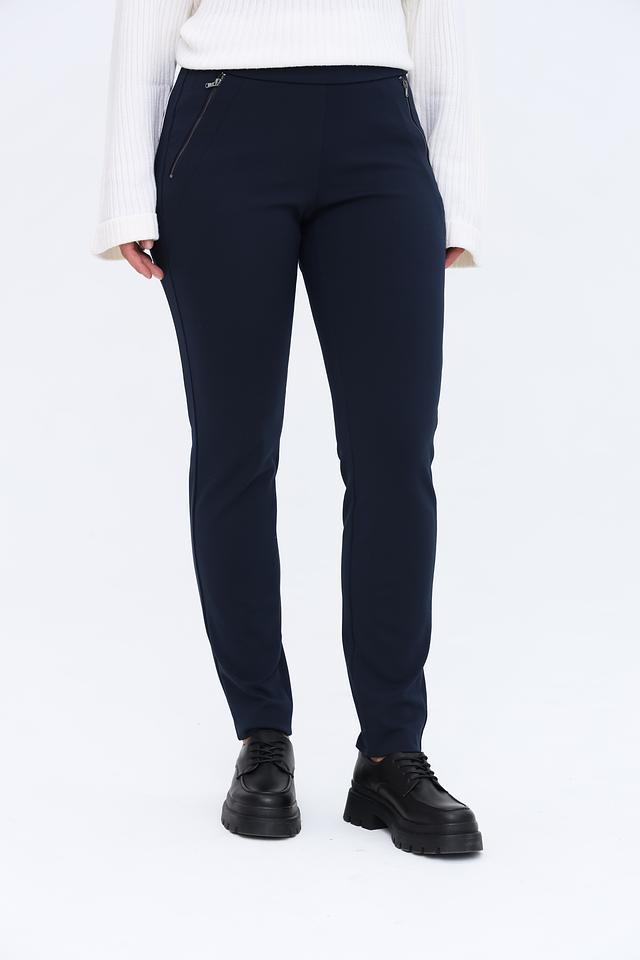 Особенностью данной модели являются декоративные молнии на карманах, которые придают брюкам современный и динамичный вид. Прямой крой и классическая посадка делают эти брюки универсальными и подходящими для различных типов фигуры. Они легко сочетаются с различными элементами одежды, от повседневных футболок до элегантных блузок и жакетов.