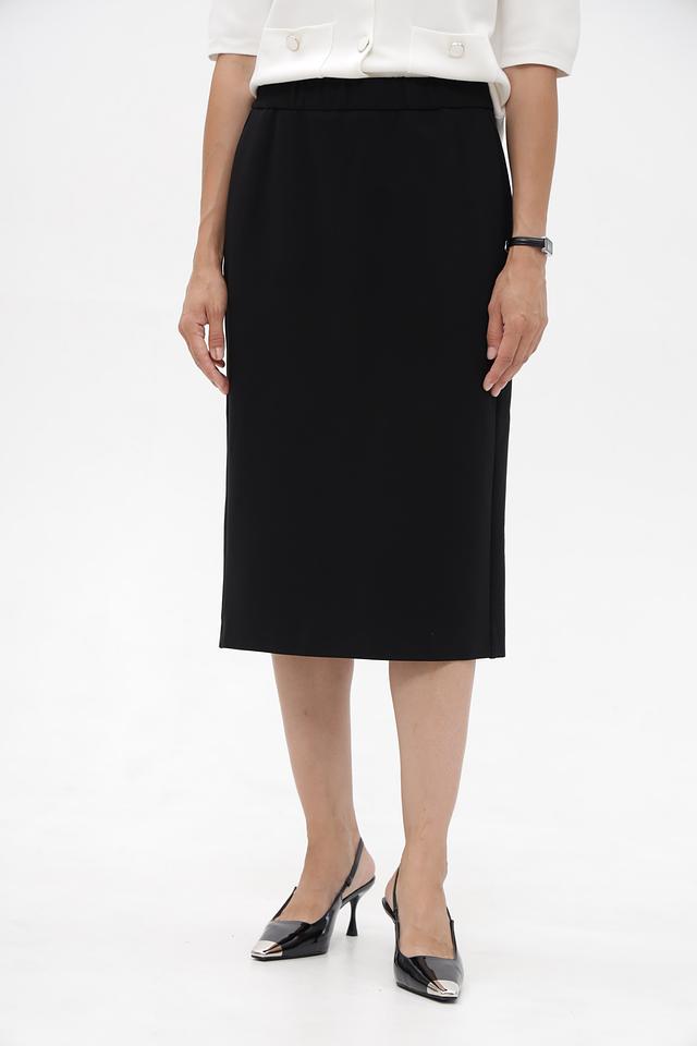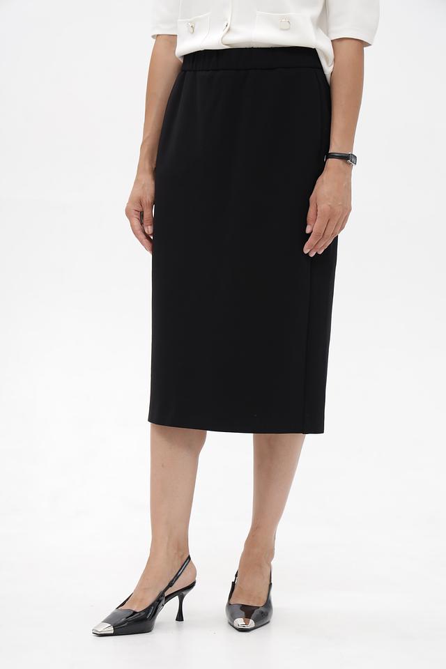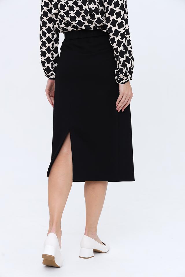 Черная юбка миди Gardeur из вискозы с эластаном. Модель с эластичным поясом и боковым разрезом. Идеальный выбор для создания элегантного и комфортного образа. Состав: вискоза 67%, полиамид 28%, эластан 5%
