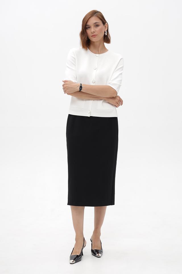 Благодаря лаконичному дизайну и нейтральному цвету, эта юбка легко сочетается с различными топами, блузами и жакетами, позволяя создавать разнообразные образы для работы, учебы или повседневной жизни. Боковой разрез добавляет изюминку в образ.