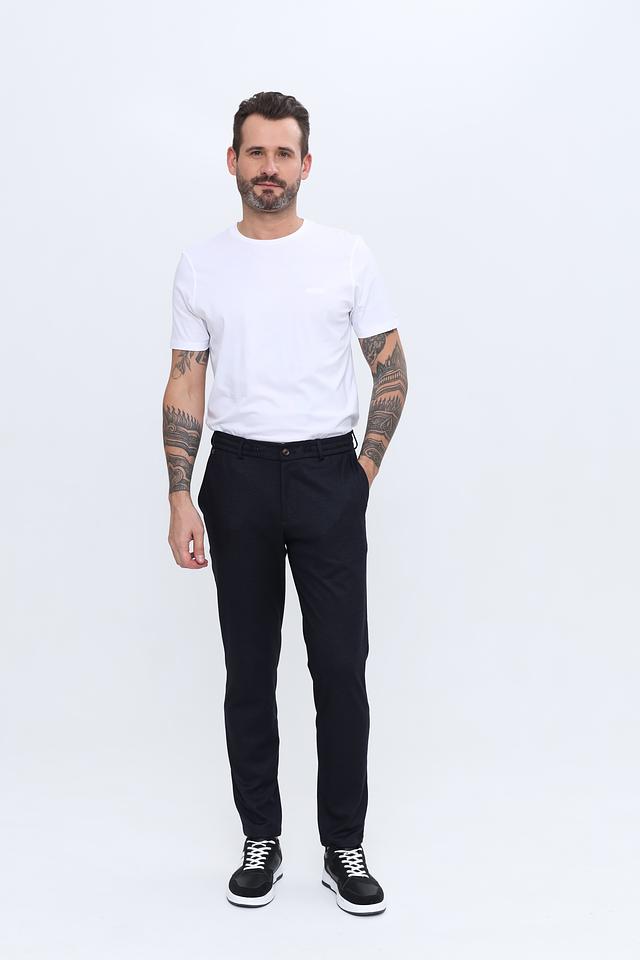 Брюки застегиваются на пуговицу и молнию. Имеют боковые карманы и задние карманы с клапанами. Эластан в составе обеспечивает свободу движений и комфортную посадку по фигуре. Данная модель станет отличным дополнением к вашему гардеробу и подойдет для работы, отдыха и других повседневных ситуаций.