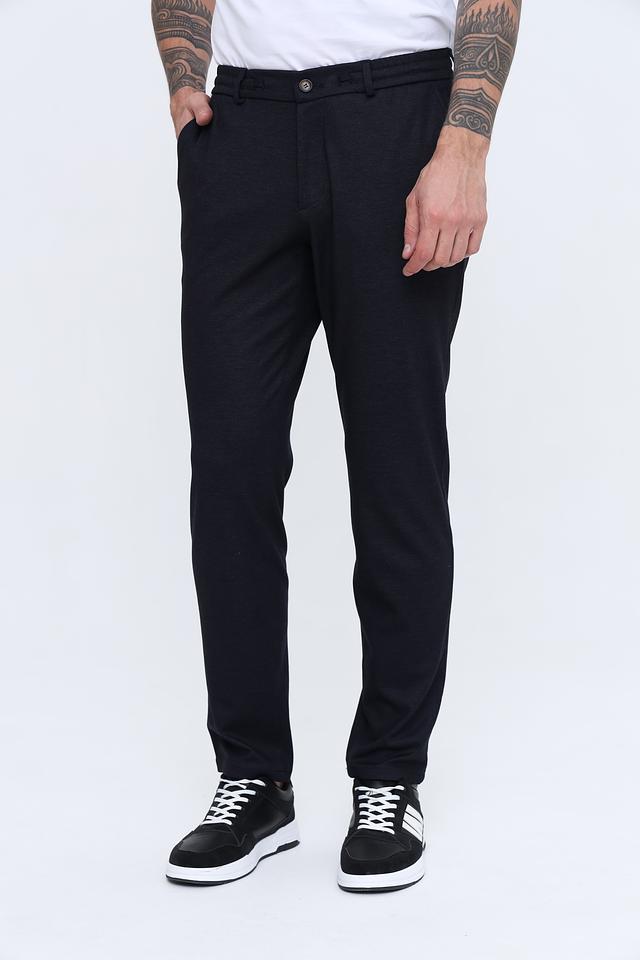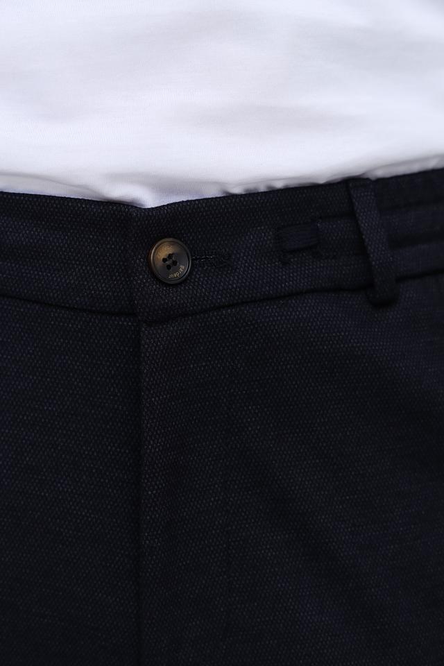 Брюки выполнены из смеси полиэстера, вискозы и эластана, что придает им мягкость, прочность и эластичность. Ткань приятна на ощупь и хорошо держит форму. Цвет брюк – темно-синий, что делает их универсальными и подходящими для создания различных образов.