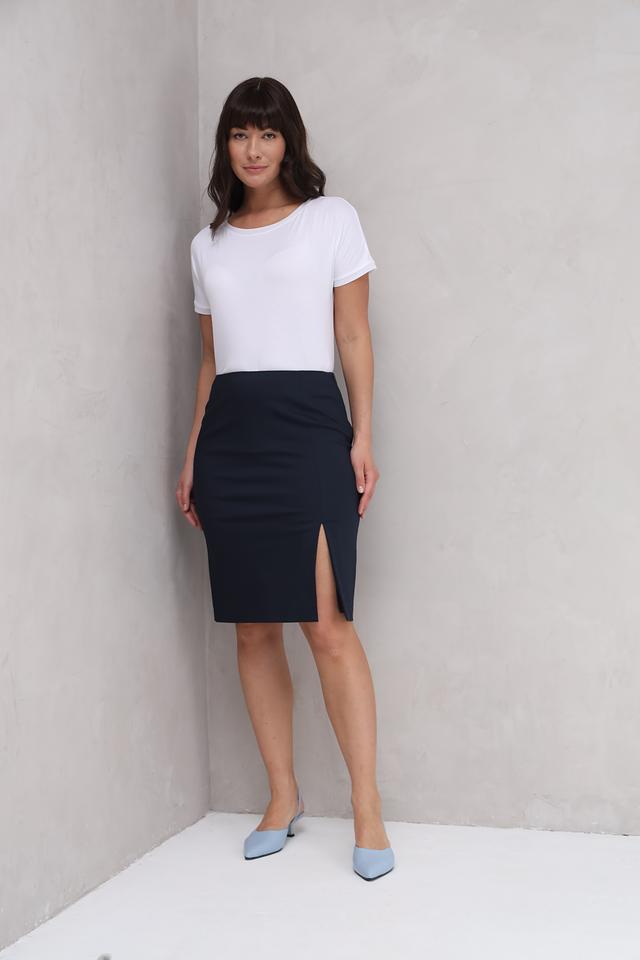 Особенностью модели является прямой силуэт и аккуратный разрез сзади, который придает юбке элегантность и свободу движений. Юбка идеально сочетается с блузками, рубашками и жакетами, создавая стильные и женственные образы.