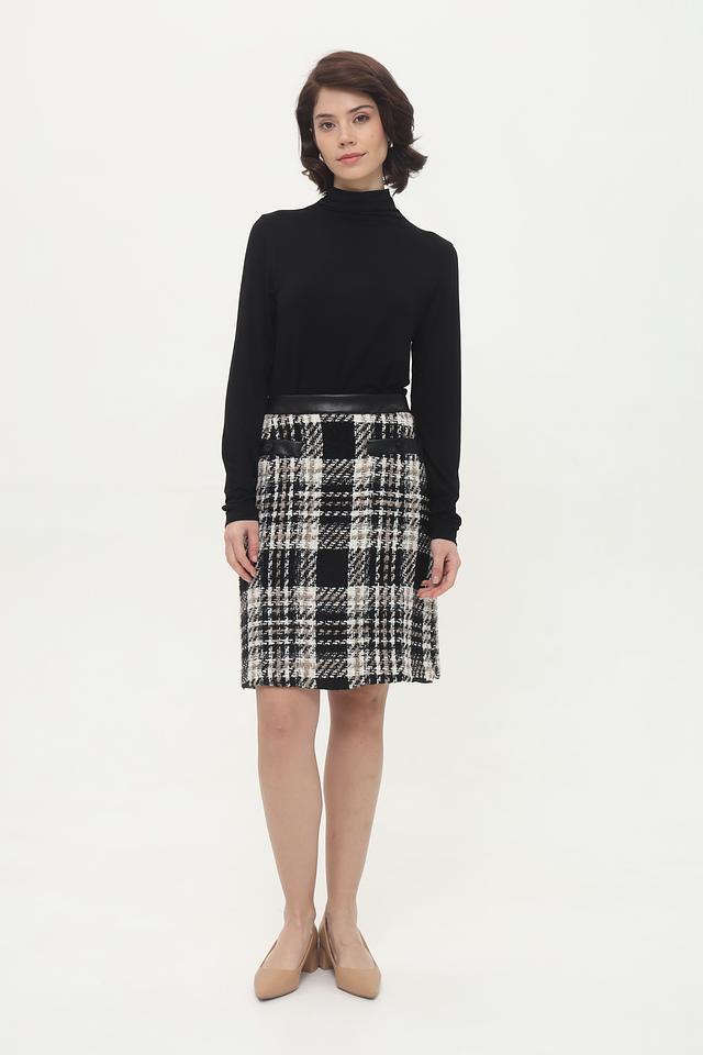Эта юбка от Gardeur станет отличным дополнением к вашему гардеробу. Она выполнена из высококачественной твидовой ткани в классическую чёрно-бежевую клетку, что делает её универсальной и подходящей для различных образов.
