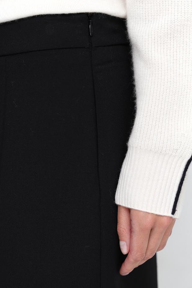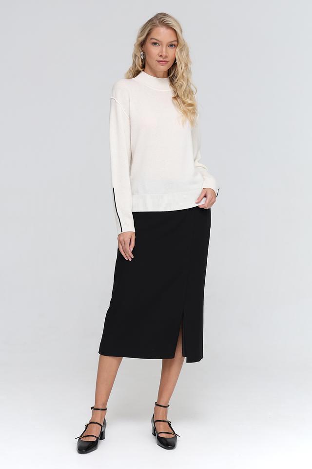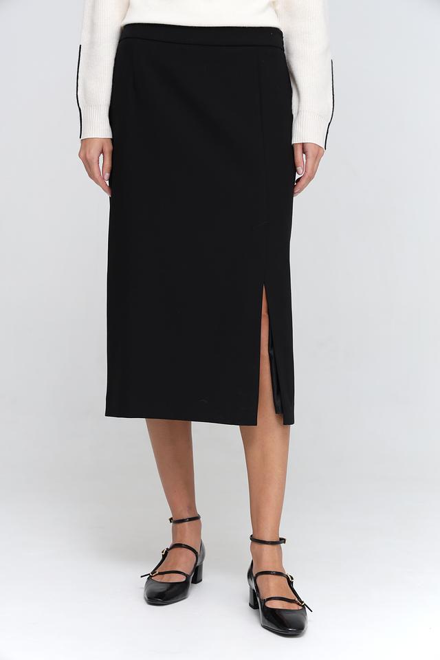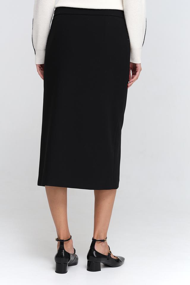 Юбка имеет прямую, слегка приталенную форму и длину миди. Особенностью модели является разрез сзади, который добавляет образу динамичности и лёгкости. Благодаря эластану в составе, юбка хорошо тянется и обеспечивает комфорт при носке.