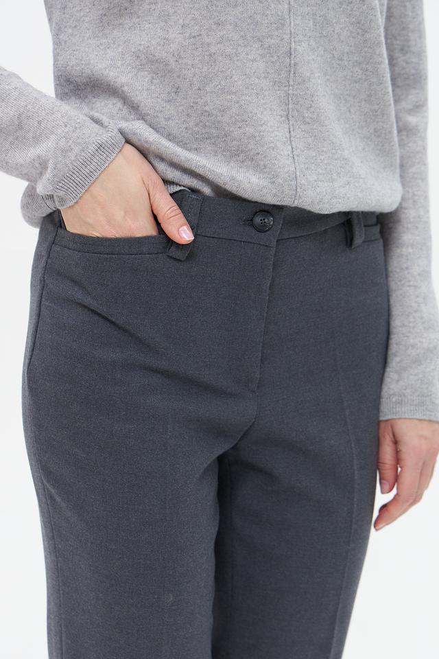 Брюки изготовлены из смеси полиэстера, шерсти, эластана и вискозы, что обеспечивает комфорт в носке, хорошую посадку и устойчивость к сминанию. Состав ткани позволяет коже дышать и сохраняет тепло в прохладную погоду.