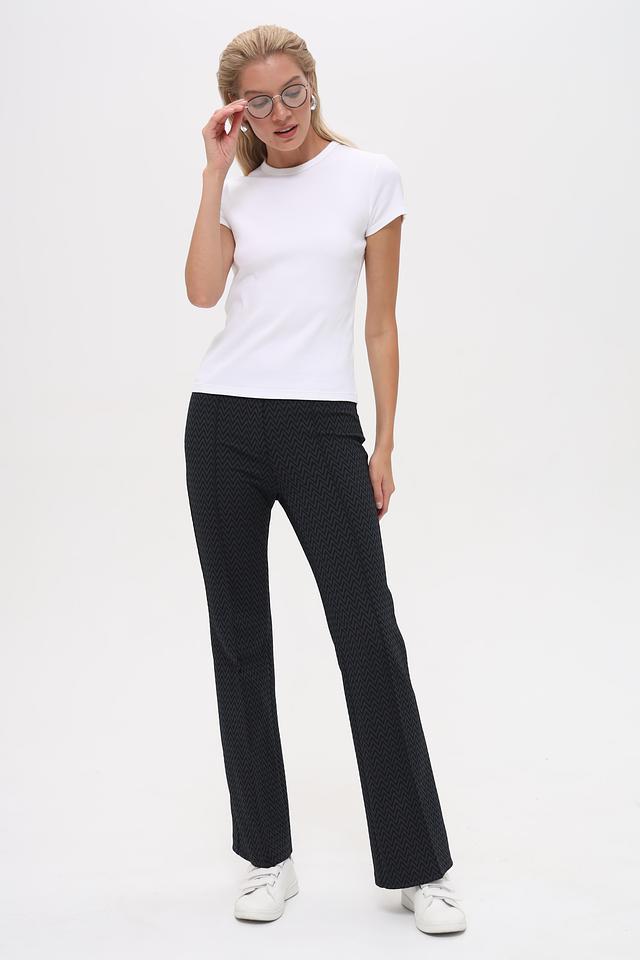 Эти брюки идеально подойдут для создания как повседневных, так и более формальных образов. Их можно сочетать с различными видами верха – от простых футболок и блузок до элегантных жакетов и кардиганов. Универсальный чёрный цвет и стильный узор делают эти брюки незаменимым элементом вашего гардероба.