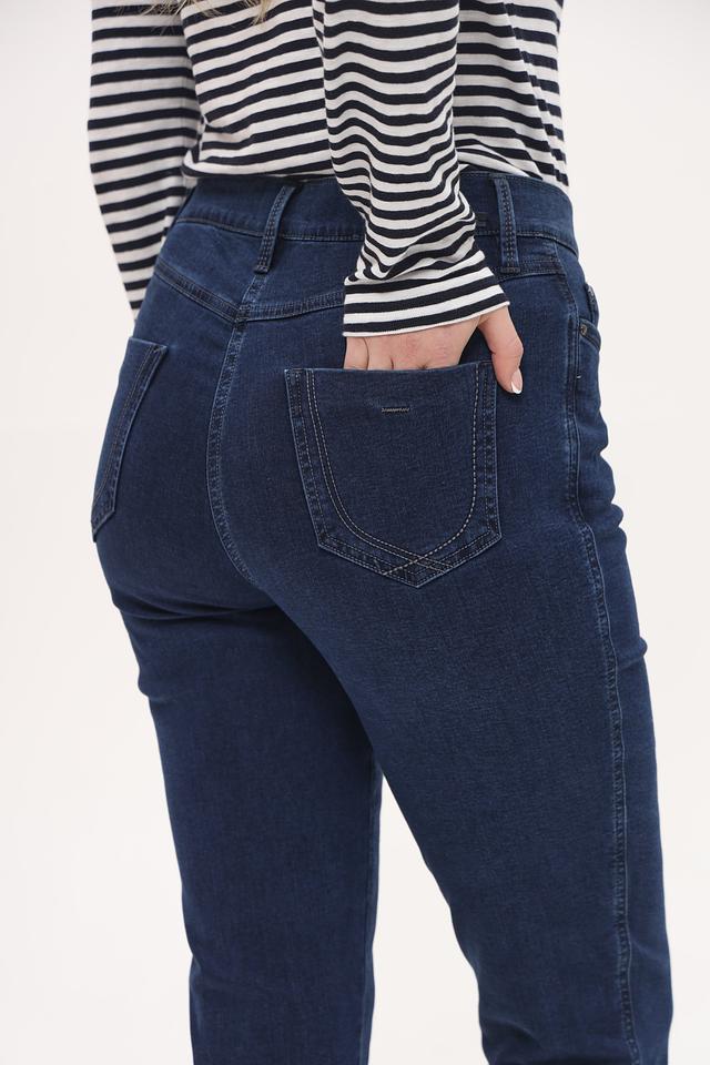 Джинсы имеют высокую посадку, которая подчеркивает талию и создает элегантный силуэт. Прямой крой обеспечивает комфорт при носке и подходит для любого типа фигуры. Ткань состоит из сочетания лиоцела, хлопка, полиэстера, модала и эластана, что гарантирует мягкость, прочность и небольшую эластичность.