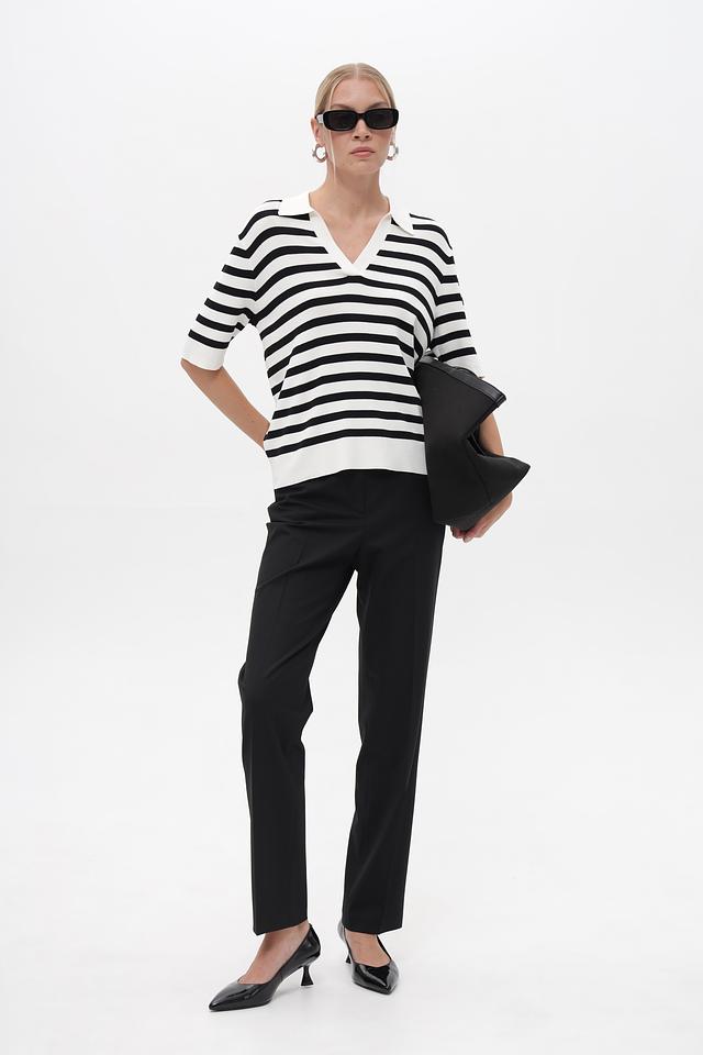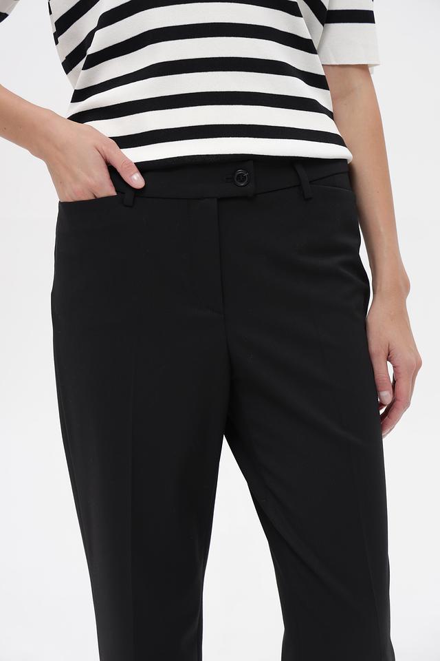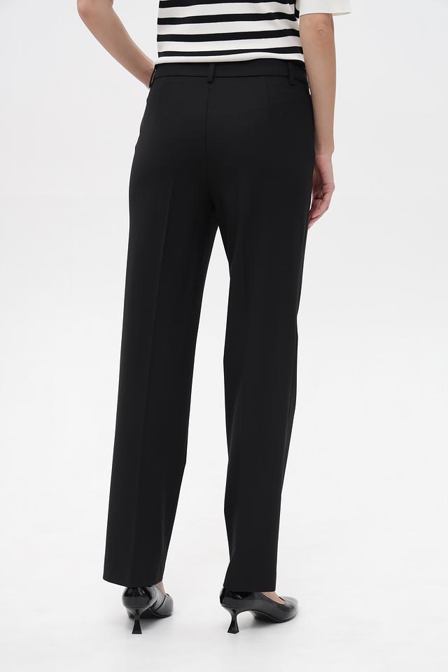 Брюки имеют прямую посадку, подчеркнутую стрелками. Застежка на пуговицу и классический пояс обеспечивают надежную фиксацию. Благодаря лаконичному дизайну, брюки легко сочетаются с различными видами верха — от блузок и рубашек до жакетов и кардиганов.