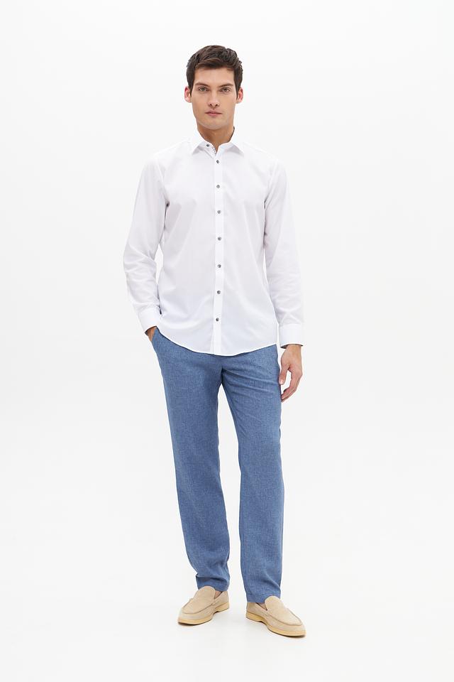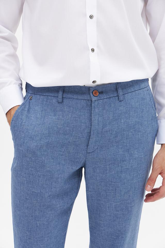 Ткань сочетает в себе прочность полиэстера и натуральность льна, что обеспечивает долговечность и комфорт в носке. Брюки идеально подойдут для создания как повседневных, так и более формальных образов. Наличие задних прорезных карманов.