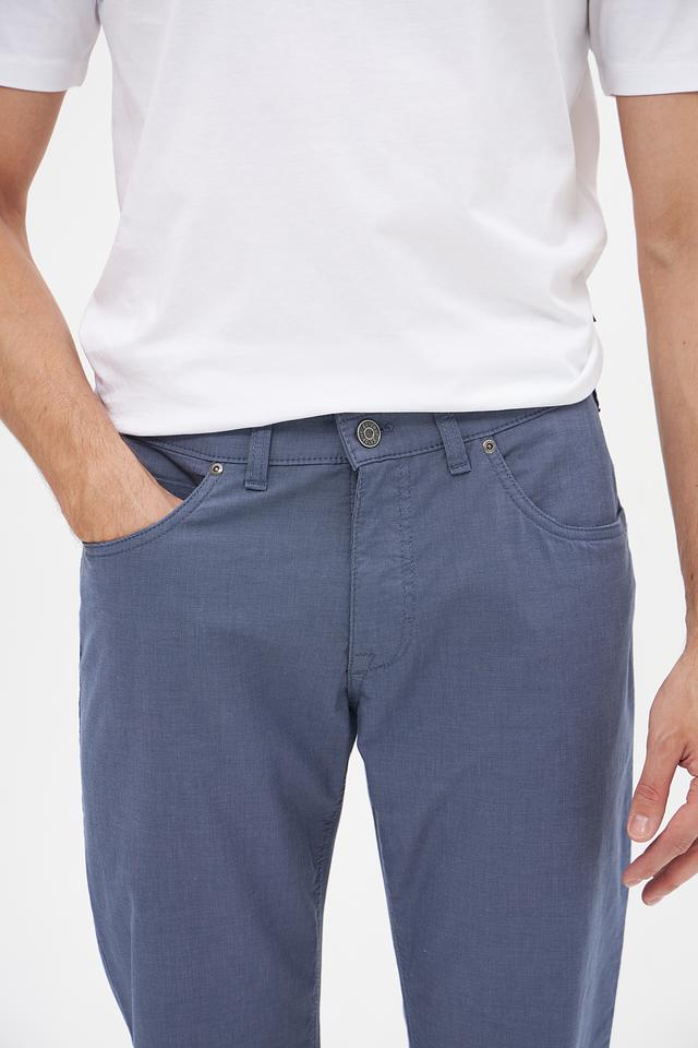 Брюки изготовлены из высококачественного хлопка (97%) с добавлением эластана (3%), что обеспечивает комфорт при носке, хорошую посадку по фигуре и устойчивость к деформации. Ткань приятна на ощупь и позволяет коже дышать.