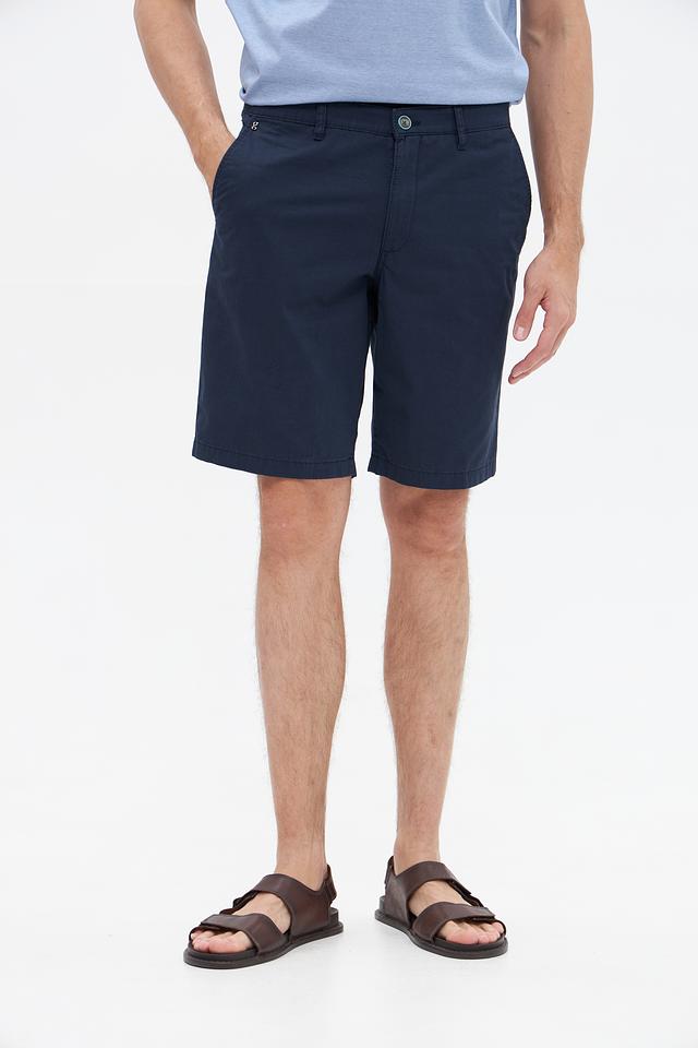 Шорты имеют стандартную посадку на талии, застежку на пуговицу и молнию, а также боковые и задние карманы. Цвет – насыщенный синий, что делает их универсальным элементом гардероба, легко сочетаемым с различными верхами. Шорты идеально подойдут для повседневной носки и создания стильных летних образов.