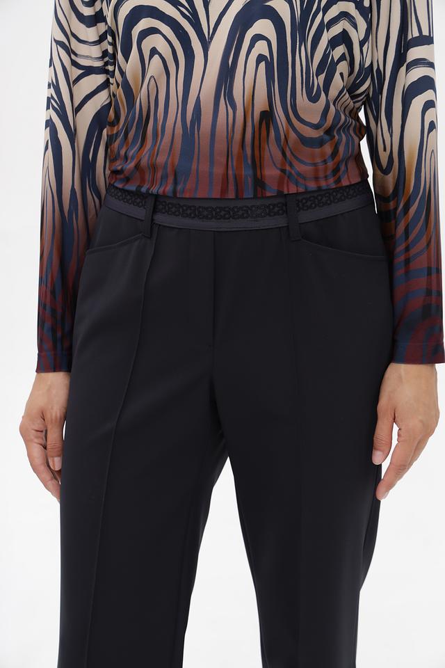 Брюки имеют прямой крой, который обеспечивает комфортную посадку и свободу движений. Пояс на талии дополнен эластичной вставкой, обеспечивающей удобство и надежную фиксацию.