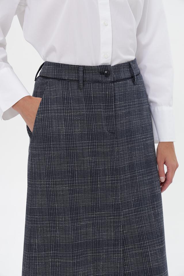 Юбка Gardeur миди синего цвета в классическую клетку. Изготовлена из сочетания полиэстера, вискозы и шерсти для комфорта и долговечности. Идеально подходит для создания делового и повседневного образа. Состав: полиэстер 57%, вискоза 32%, шерсть 9%, эластан 2%