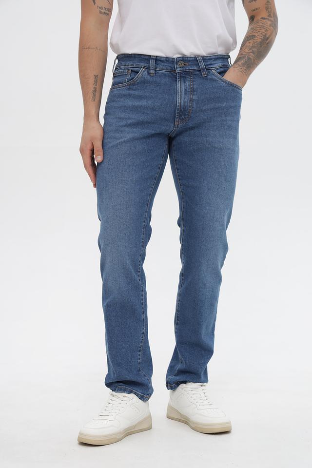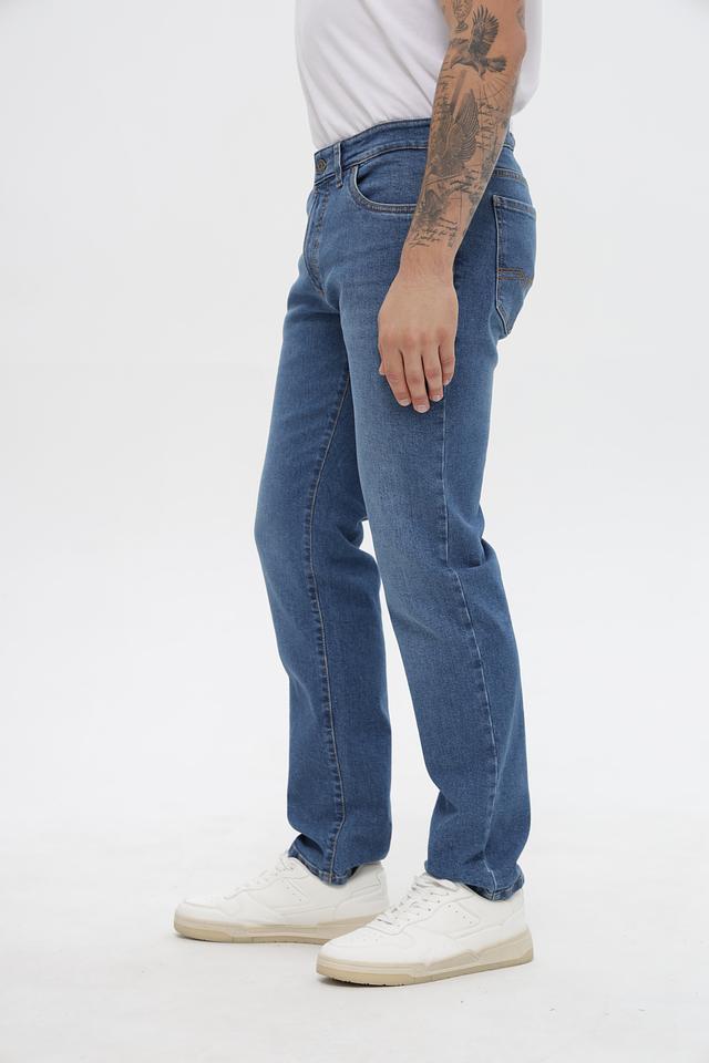 Джинсы имеют прямой крой, который обеспечивает свободу движений и комфортную посадку. Состав ткани включает 83% хлопок, 16% полиэстер и 1% эластан, что гарантирует приятные тактильные ощущения, износостойкость и небольшую эластичность.