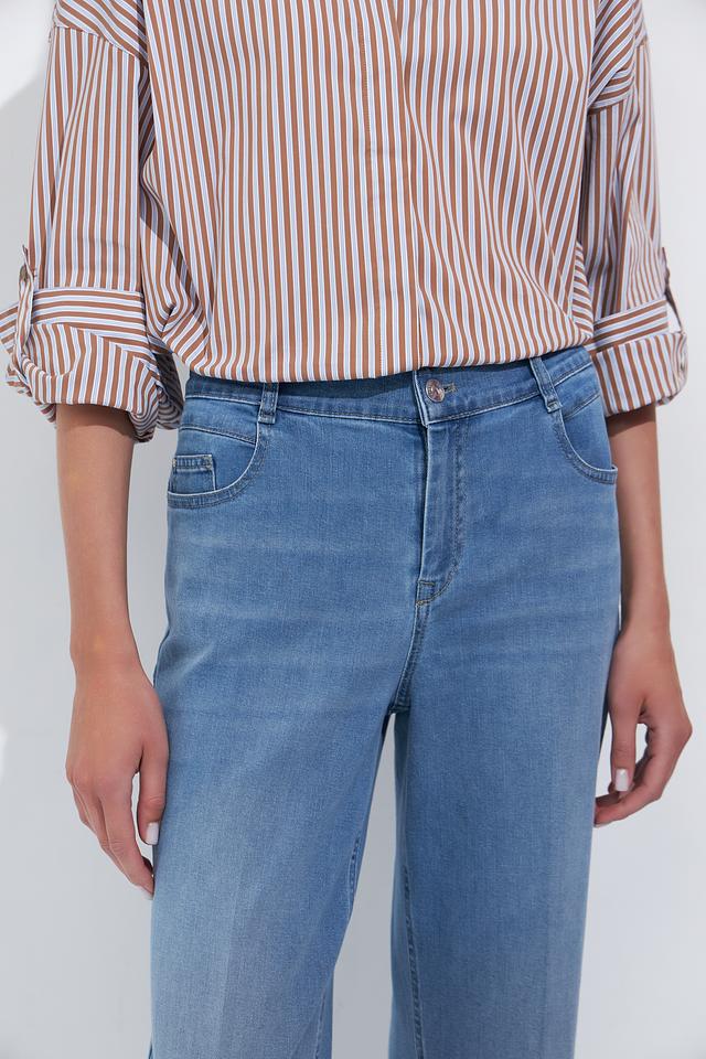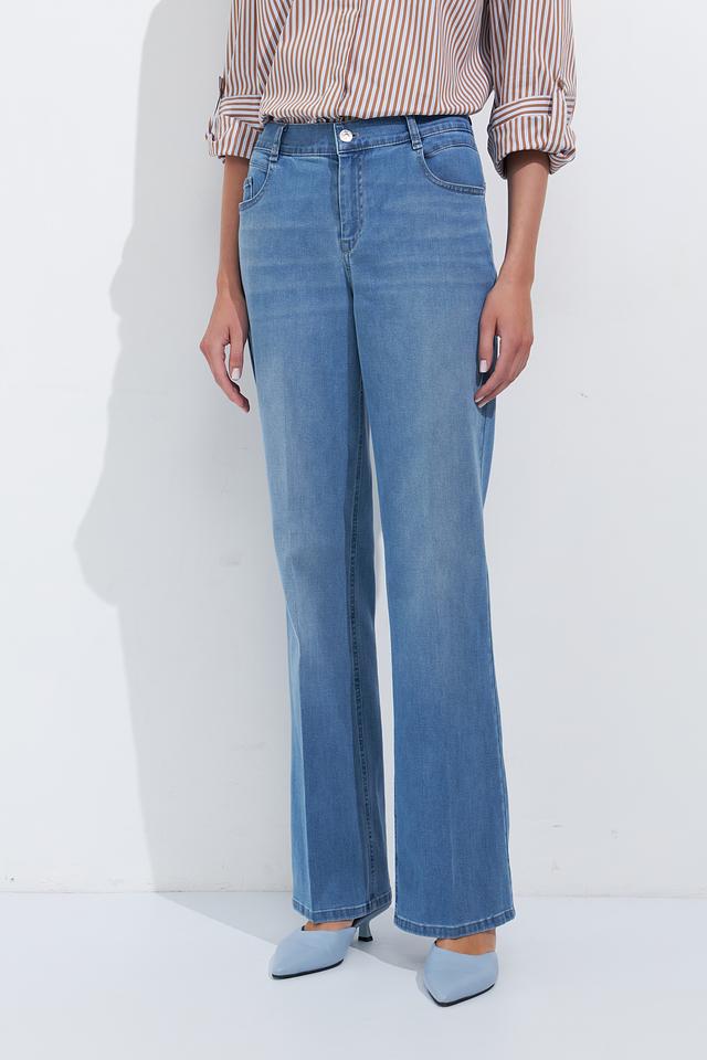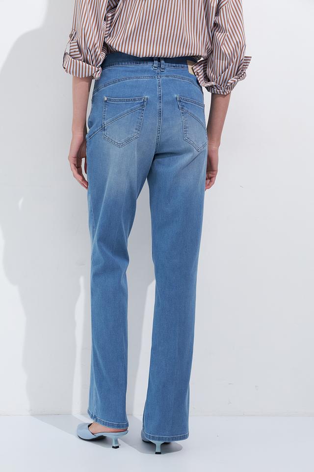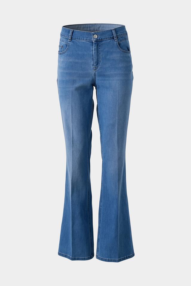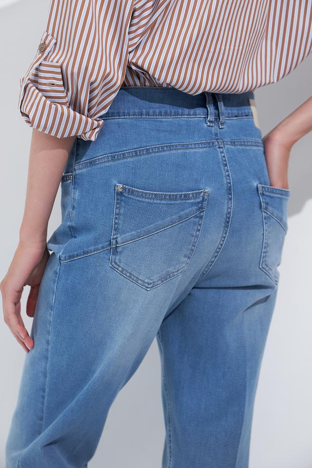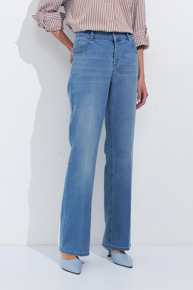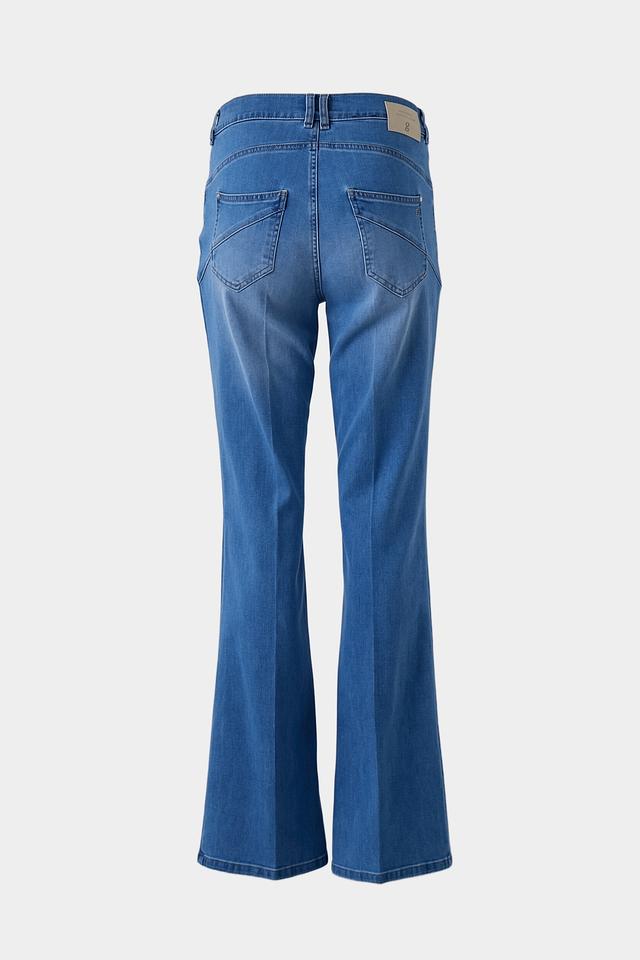 Женские джинсы Gardeur голубого цвета, модель клеш с высокой посадкой. Классический деним с небольшим эффектом потертости и удобным кроем. Состав: хлопок 80%, лиоцел 15%, эластомультиэстер 3%, эластан 2%