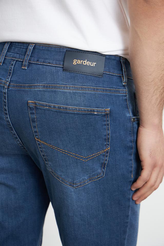 Задние карманы имеют декоративную отстрочку, а фирменный логотип Gardeur размещен на кожаной этикетке сзади на поясе. Эти джинсы станут отличным выбором для тех, кто ценит качество, комфорт и стиль.