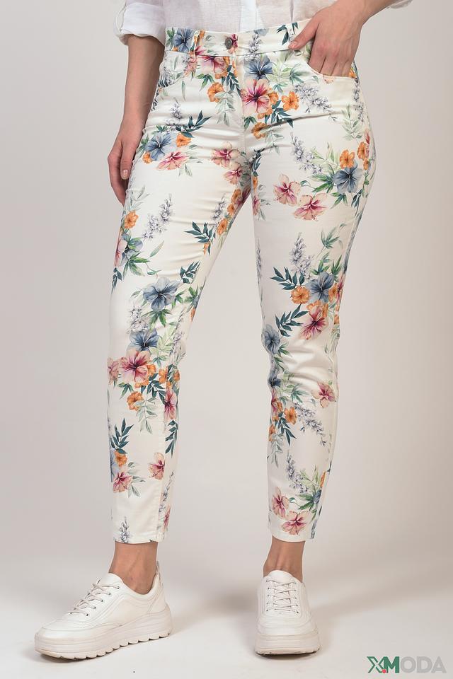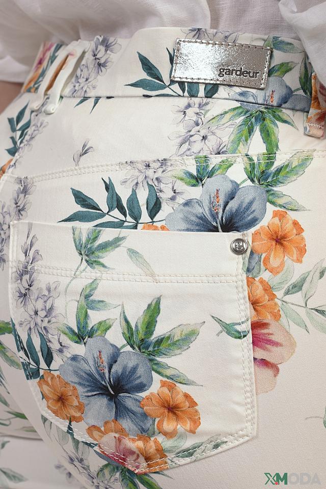 Женские капри Gardeur белого цвета с ярким цветочным принтом – стильное и комфортное решение для летнего гардероба. Модель выполнена из качественного хлопка с добавлением эластана, обеспечивающего удобную посадку. Состав: хлопок 97%, эластан 3%