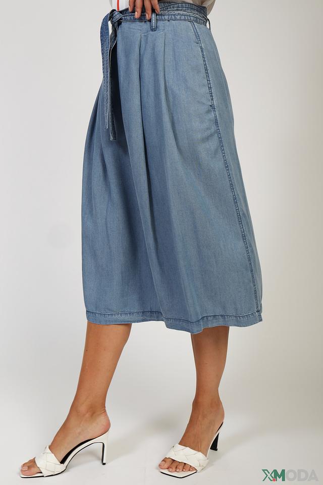 Юбка Gardeur голубого цвета выполнена из 100% лиоцела и имеет пояс с завязками. Модель длиной миди с плиссировкой и боковым разрезом, идеально подходит для создания стильных образов. Состав: лиоцел 100%