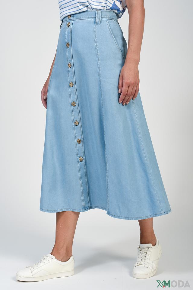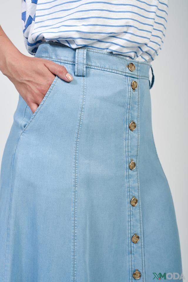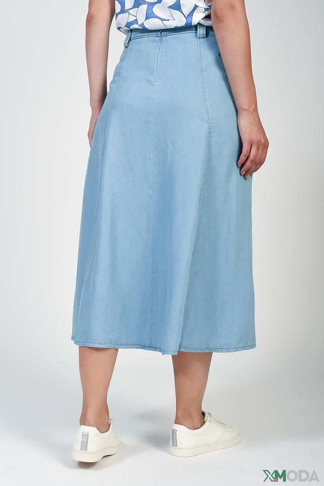 Светло-голубая юбка Gardeur из 100% лиоцела – это стильное и комфортное решение для повседневного образа. Модель выполнена в стиле деним с застежкой на пуговицы и имеет длину миди. Состав: лиоцел 100%