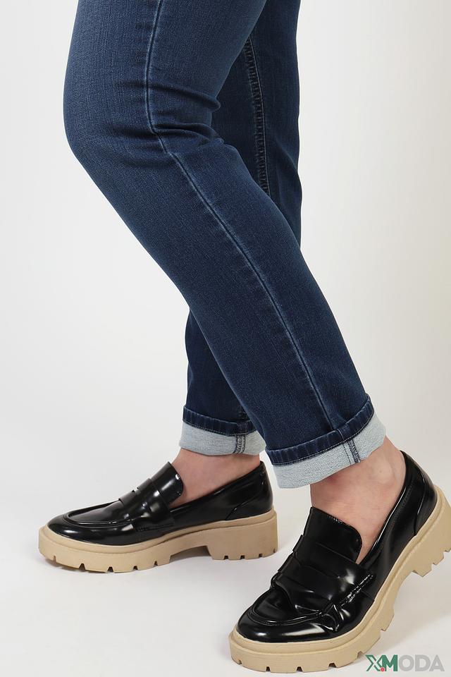 Джинсы имеют слегка завышенную талию, что обеспечивает комфортную посадку и подчеркивает достоинства фигуры. Ткань – это высококачественный деним, состоящий из 90% хлопка, 8% полиэстера и 2% эластана, что обеспечивает удобство в носке и сохранение формы.