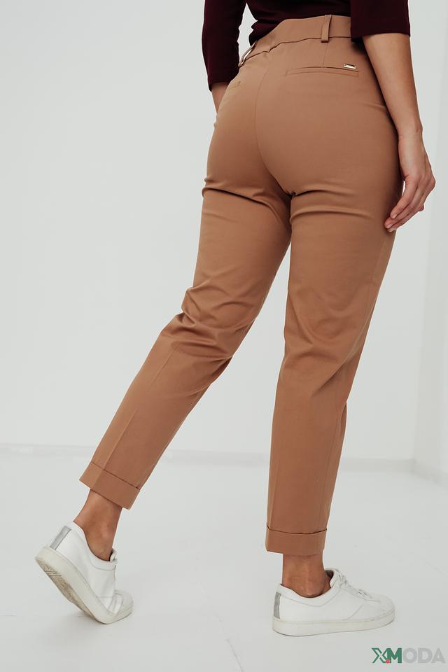 Брюки изготовлены из высококачественного хлопка (97%) с добавлением эластана (3%), что обеспечивает комфортную посадку и свободу движений. Зауженный крой подчеркивает фигуру, а подвернутые штанины придают образу непринужденность и современный вид.