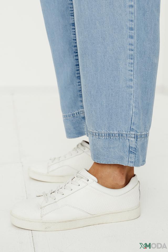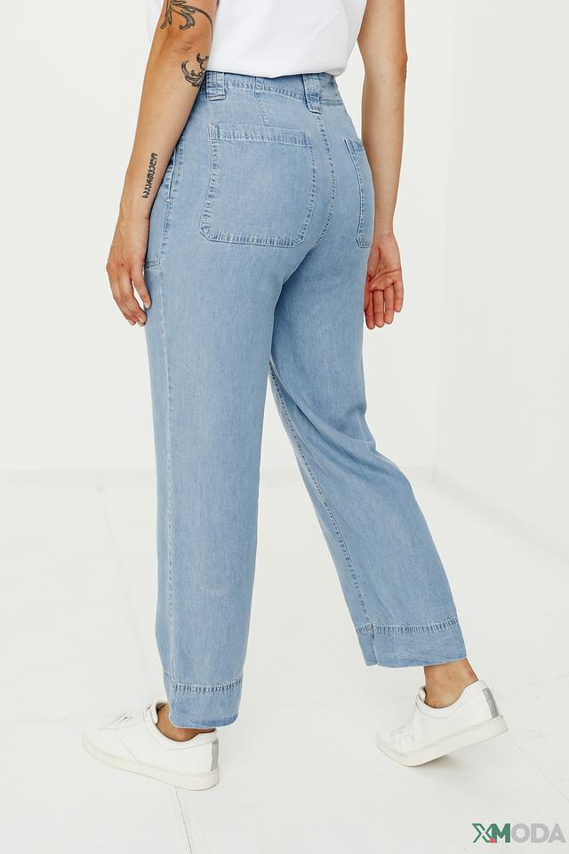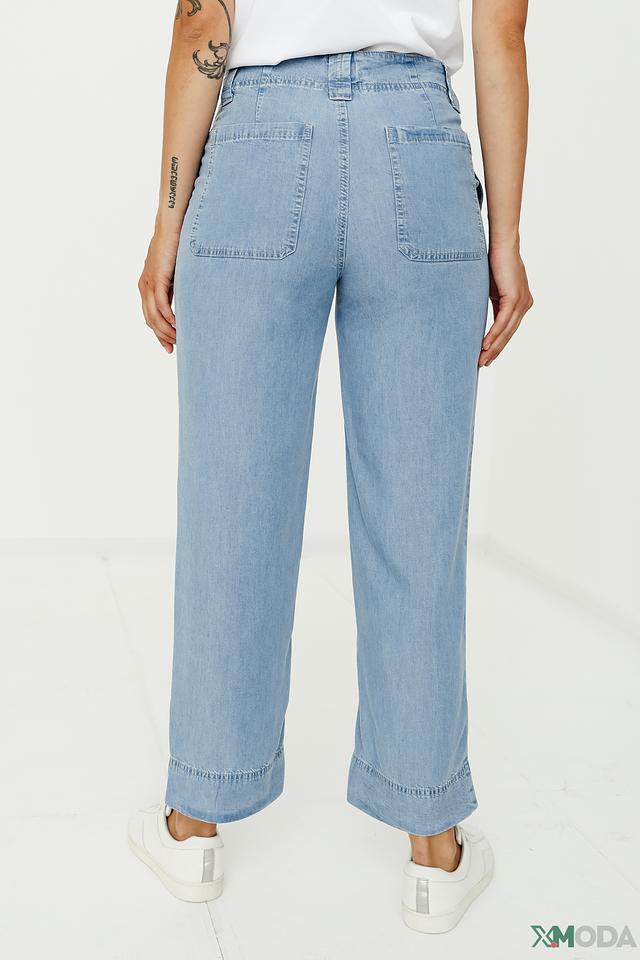 Модель отличается наличием функциональных накладных карманов, добавляющих практичности и стиля. Светлый голубой цвет делает брюки универсальными и легко сочетаемыми с различными элементами гардероба. Высокая посадка подчеркивает талию и обеспечивает комфортную посадку.