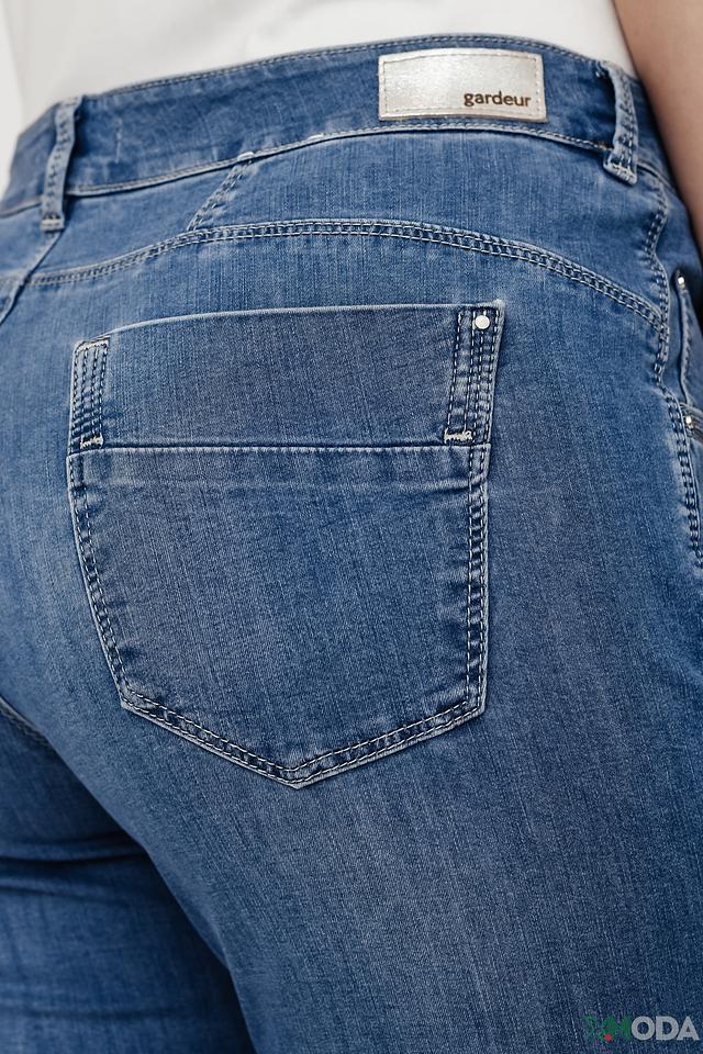 Женские джинсы Gardeur голубого цвета с зауженным силуэтом и манжетами. Модель выполнена из качественного хлопка с добавлением эластана для комфортной посадки и свободы движений. Состав: хлопок 89%, эластомультиэстер 8%, эластан 3%