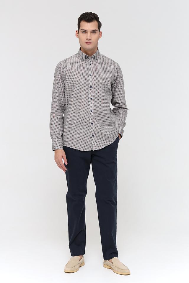 Крой брюк – прямой, что делает их универсальными для различных типов фигуры. Модель оснащена стандартными карманами, включая задние в рамку. Застежка – молния и пуговица. Данные брюки станут отличным дополнением к вашему повседневному или деловому гардеробу.