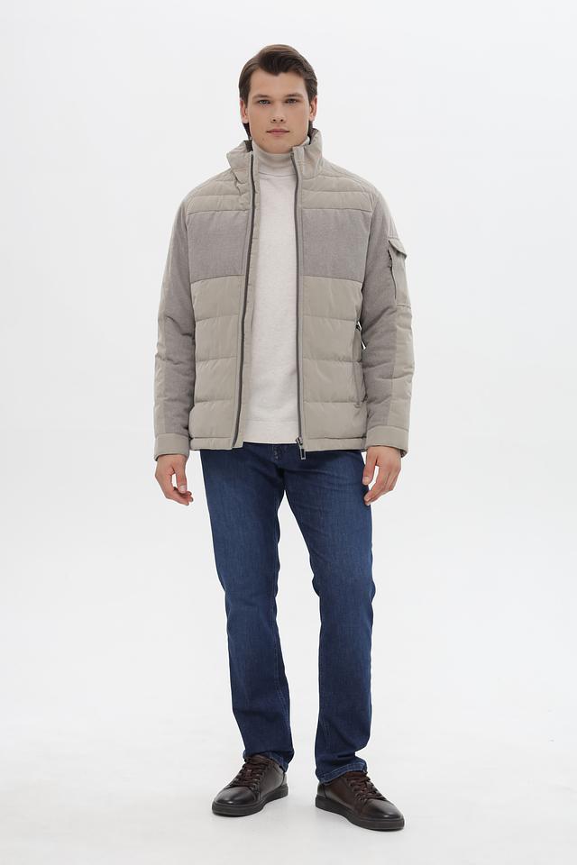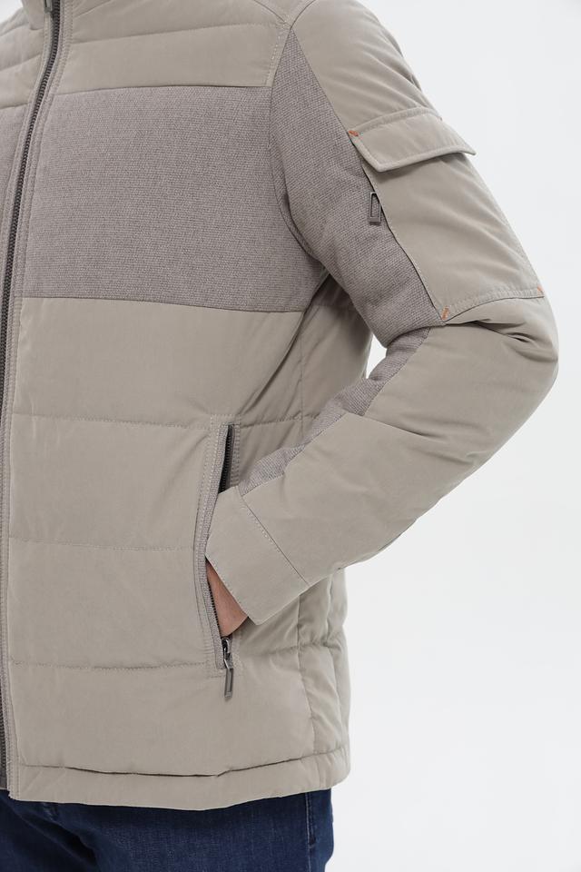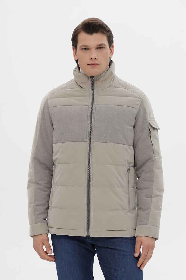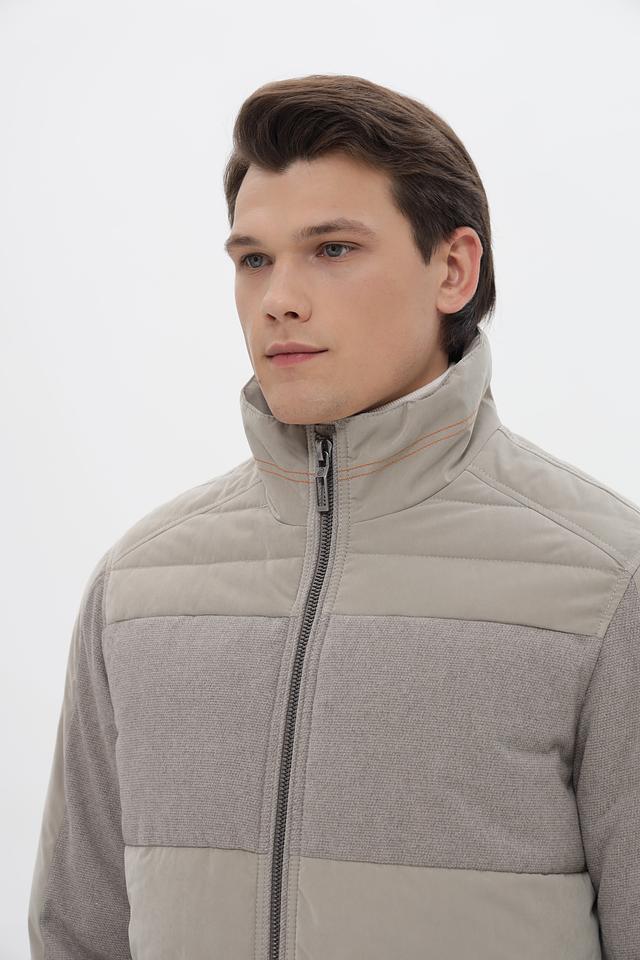 Эта мужская куртка от Gate one сочетает в себе современный дизайн и функциональность. Основной цвет куртки – бежевый, дополненный вставками из серого материала, имитирующего шерсть. Куртка имеет стеганую фактуру на большей части поверхности, что придает ей стильный вид.