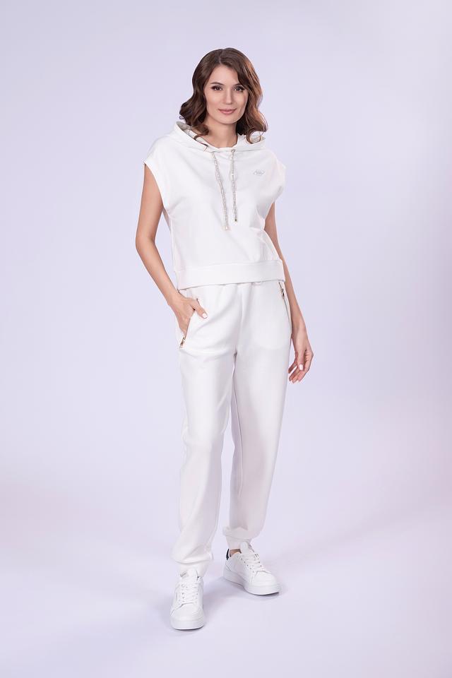 Модель имеет удобный крой с эластичным поясом и завязками, обеспечивающими комфортную посадку. Боковые карманы на молнии не только добавляют функциональности, но и подчеркивают современный дизайн брюк.