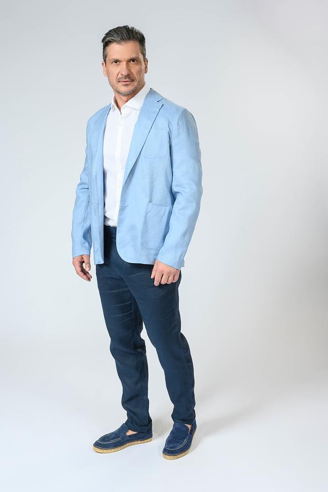 Голубой льняной пиджак от Gaudi – стильное и комфортное решение для создания элегантного образа. Классический крой и натуральный состав обеспечивают удобную посадку и воздухопроницаемость. Состав: хлопок 50%, лен 50%