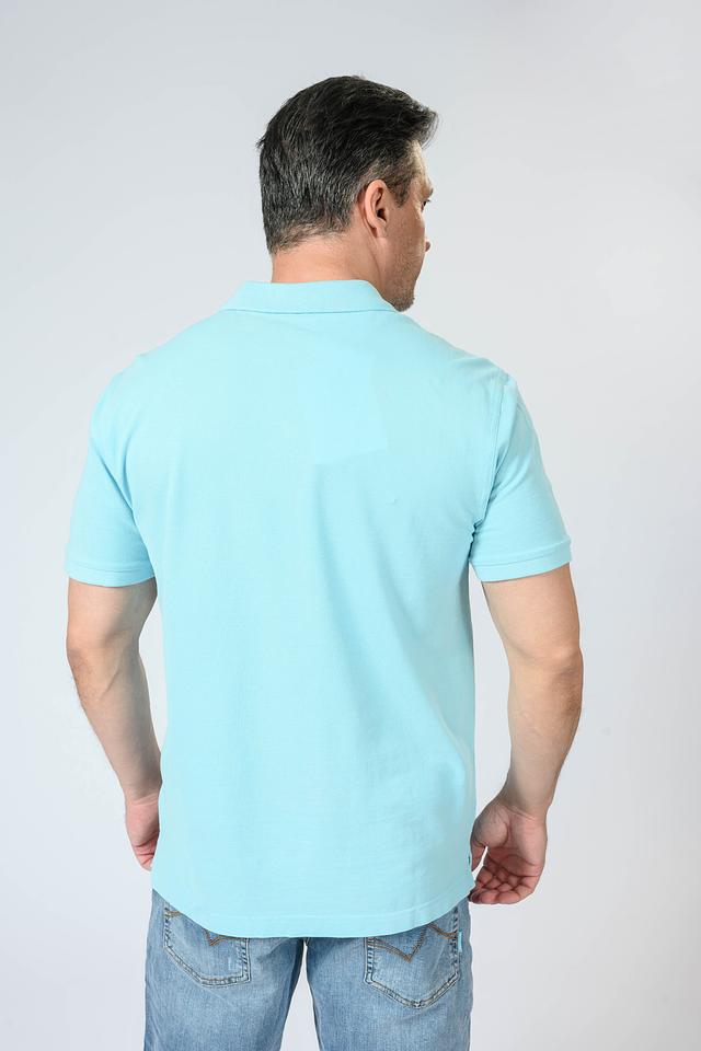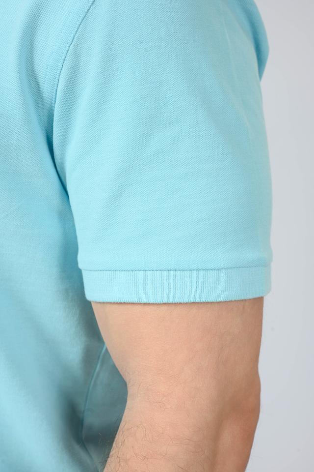 Поло голубого цвета, украшено небольшим вышитым логотипом бренда на груди. Воротник и манжеты выполнены в рубчик, что придает поло аккуратный и завершенный вид. Эта модель станет отличным выбором для повседневной носки, а также для создания более формальных образов.