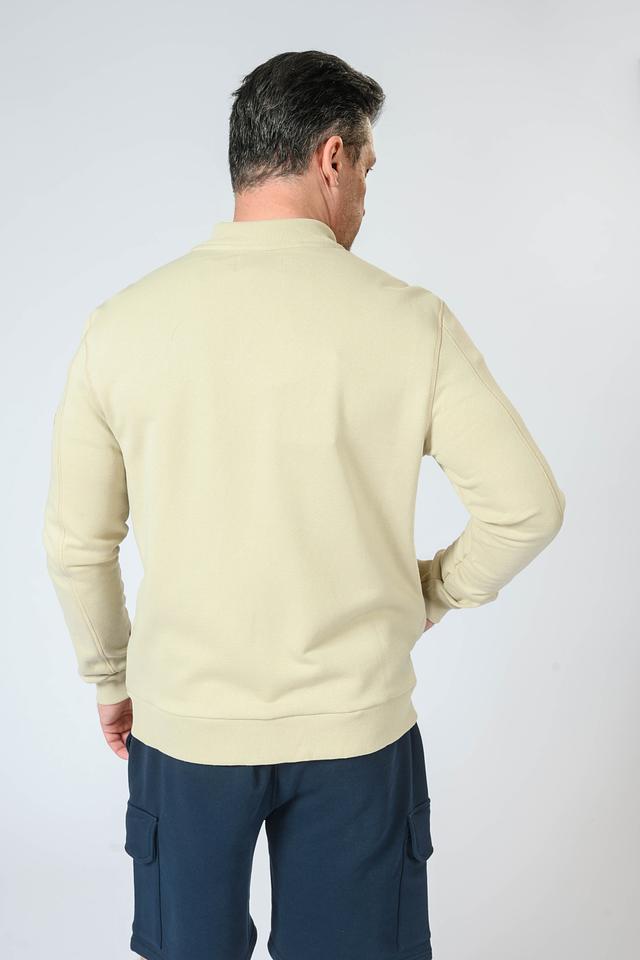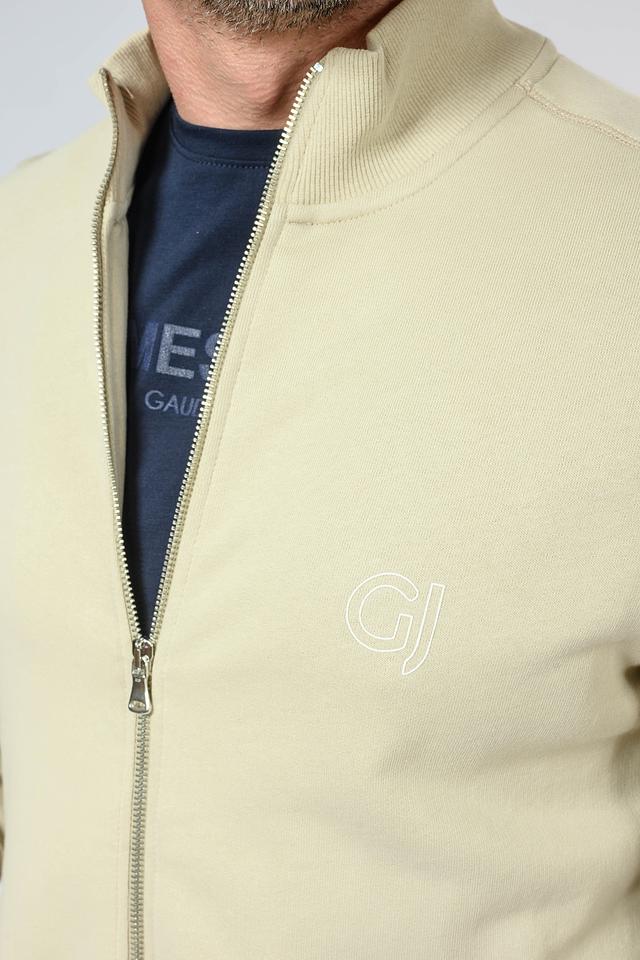Мужской кардиган от бренда Gaudi выполнен в бежевом цвете и станет отличным дополнением к вашему гардеробу. Модель застегивается на молнию, имеет воротник-стойку и длинные рукава.
