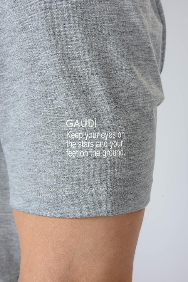 На левом рукаве присутствует небольшая надпись и логотип бренда Gaudi. Эта футболка идеально подходит для повседневной носки, активного отдыха или создания непринужденного образа. Она станет отличным выбором для тех, кто ценит комфорт, качество и стиль.