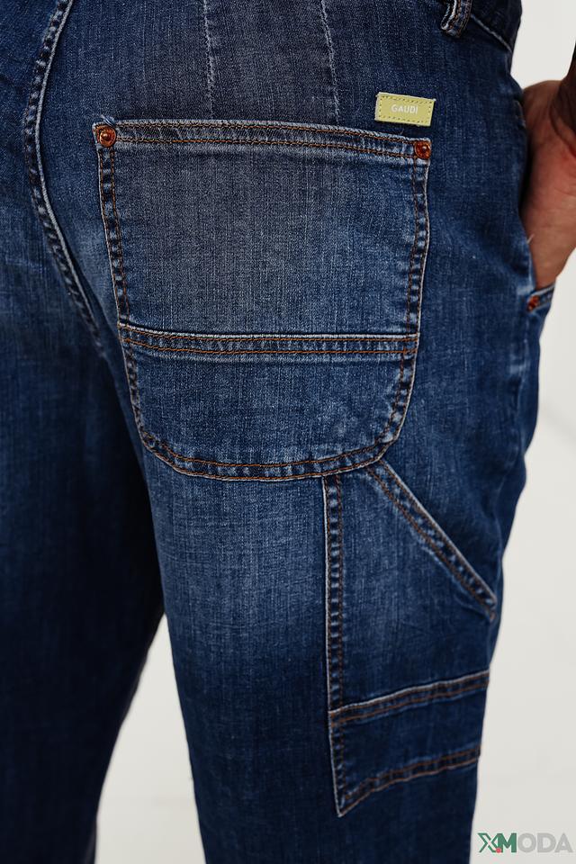 Мужские джинсы Gaudi синего цвета в стиле карго – удобная и практичная модель с большим количеством карманов. Изготовлены из качественного хлопка с добавлением эластана для комфортной посадки и свободы движений. Состав: хлопок 98%, эластан 2%