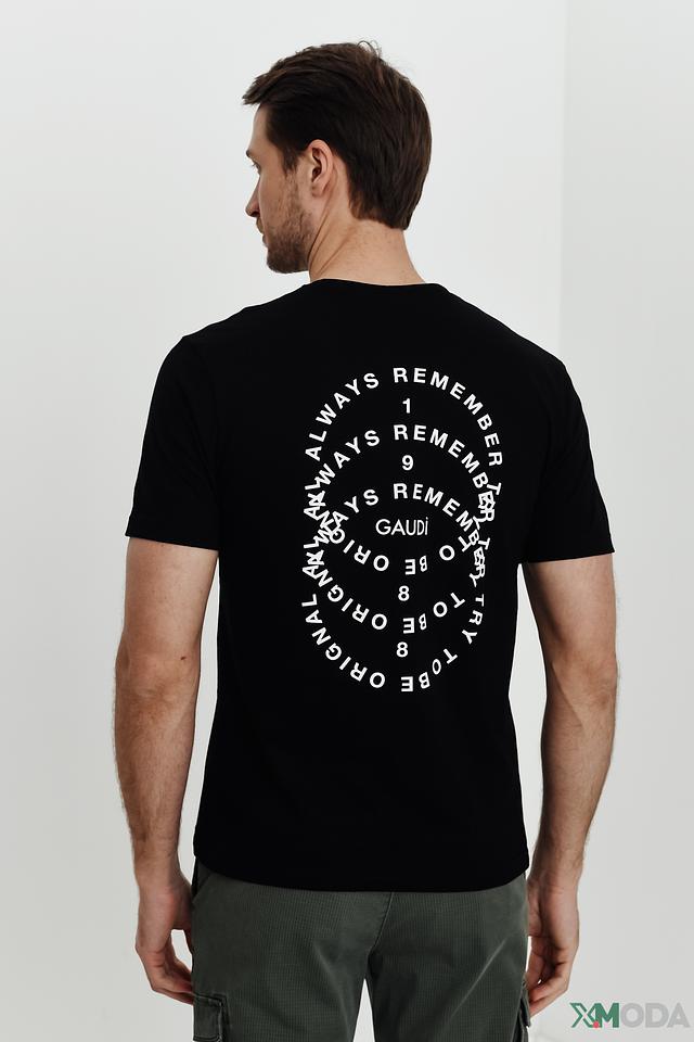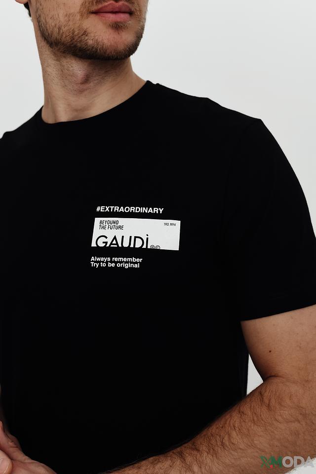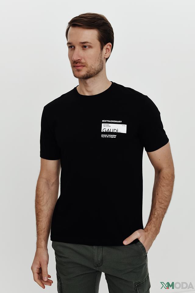 Чёрная футболка от Gaudi с оригинальным принтом на груди. Изготовлена из 100% хлопка, обеспечивая комфорт и воздухопроницаемость. Стильный и лаконичный дизайн делает эту футболку отличным выбором для повседневного образа. Состав: хлопок 100%