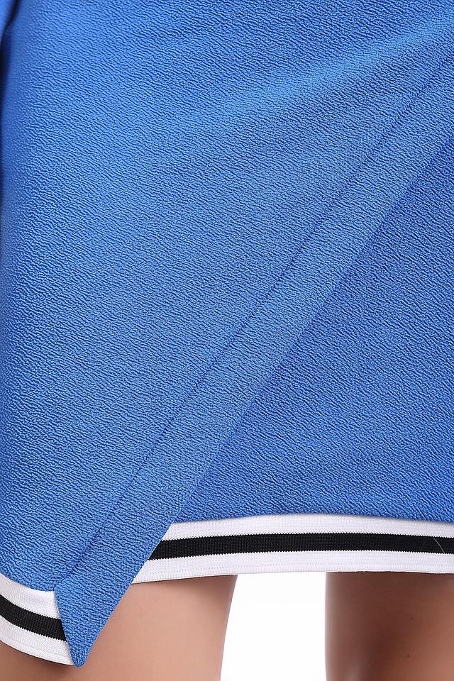 Синее платье от Gaudi Jeans с длинным рукавом и контрастной полоской. Приталенный силуэт и асимметричный низ придают модели особый шарм. Идеальный выбор для создания стильного повседневного образа. Состав: полиэстер 95%, Состав_2 полиэстер 78%, Состав_2 эластан 22%, эластан 5%