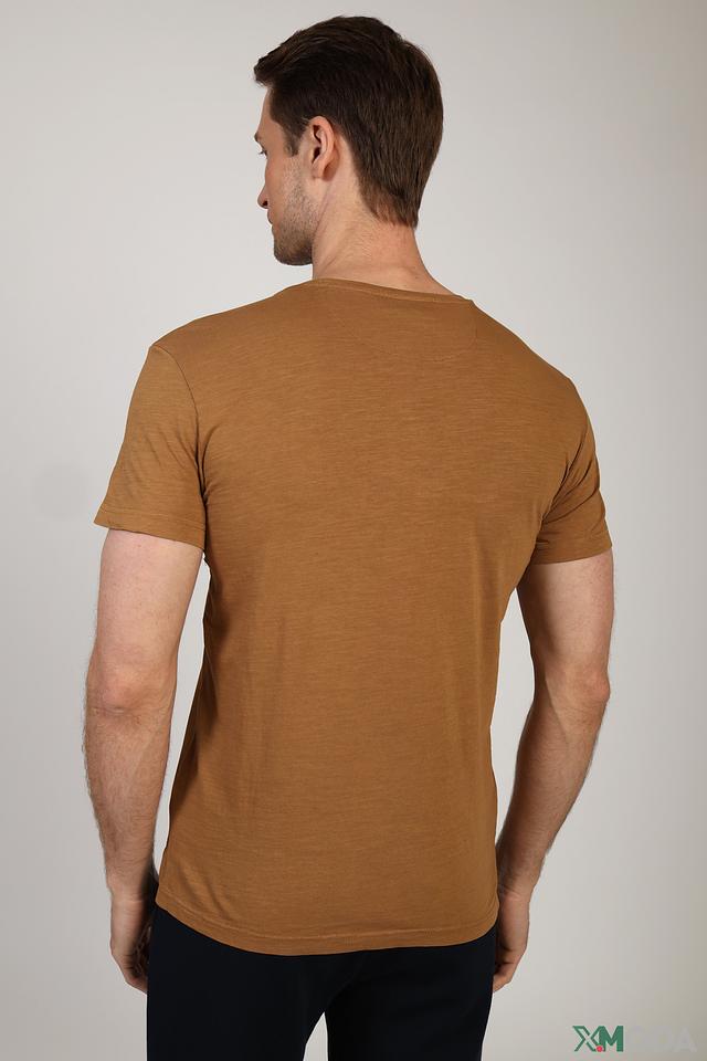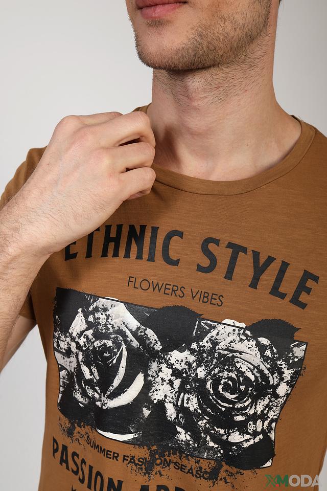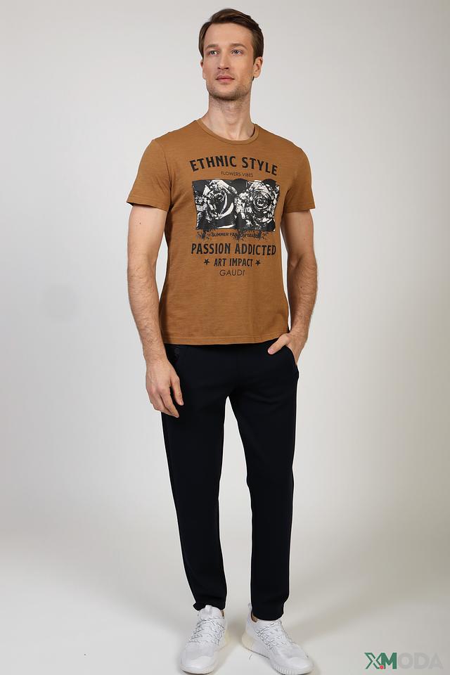 Мужская футболка Gaudi Jeans коричневого цвета с ярким принтом в этническом стиле. Изготовлена из 100% хлопка, обеспечивающего комфорт и воздухопроницаемость. Состав: хлопок 100%