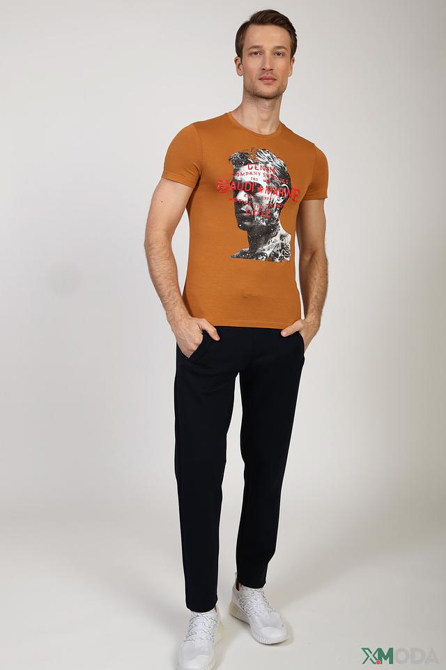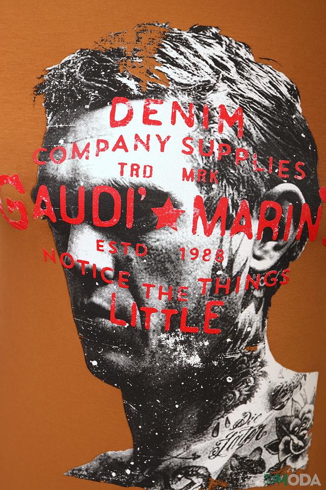 Мужская футболка Gaudi Jeans коричневого цвета с эффектным принтом в виде портрета. Изготовлена из мягкого хлопка с добавлением эластана для комфорта и лучшей посадки. Состав: хлопок 95%, эластан 5%