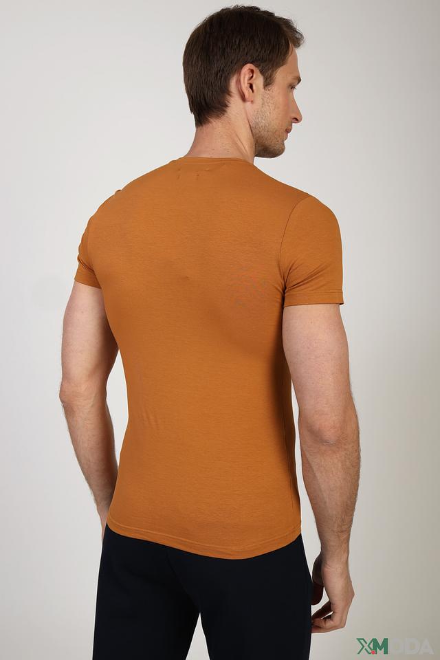 Модель имеет классический крой, который обеспечивает свободу движений и комфортную посадку по фигуре. Футболка изготовлена из высококачественного хлопка (95%) с добавлением эластана (5%), что делает ее приятной на ощупь, дышащей и устойчивой к деформации.
