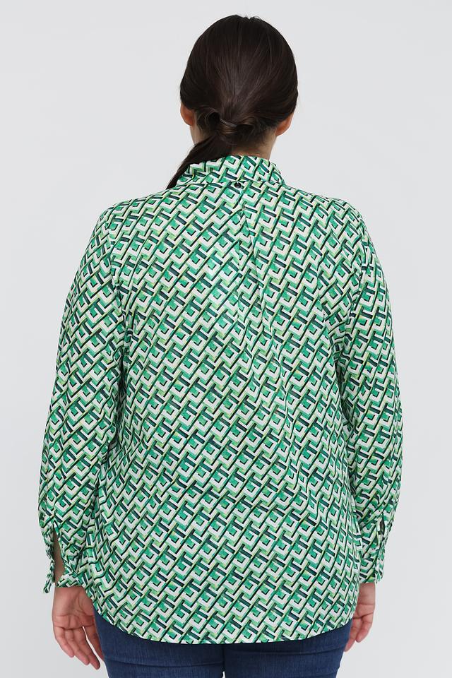 Женская рубашка Gerry Weber зеленого цвета с геометрическим принтом. Модель с длинным рукавом и классическим воротником, выполнена из 100% органического хлопка. Состав: хлопок органич. 100%