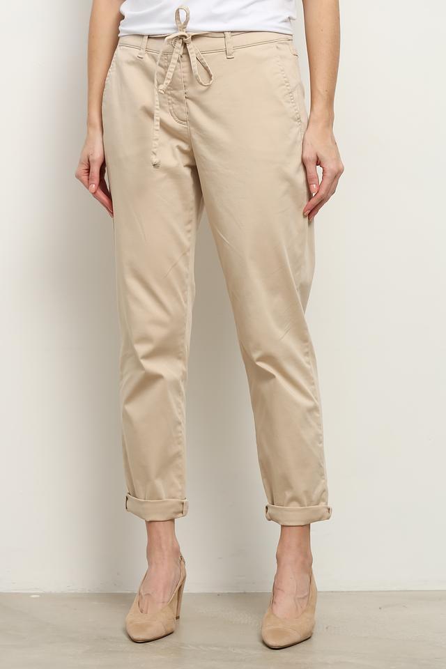 Бежевые брюки Gerry Weber EDITION — удобная и стильная модель с завязками на поясе. Изготовлены из органического хлопка с добавлением эластана для комфорта и свободы движений. Идеальный выбор для создания повседневных образов. Состав: хлопок органич. 96%, эластан 4%