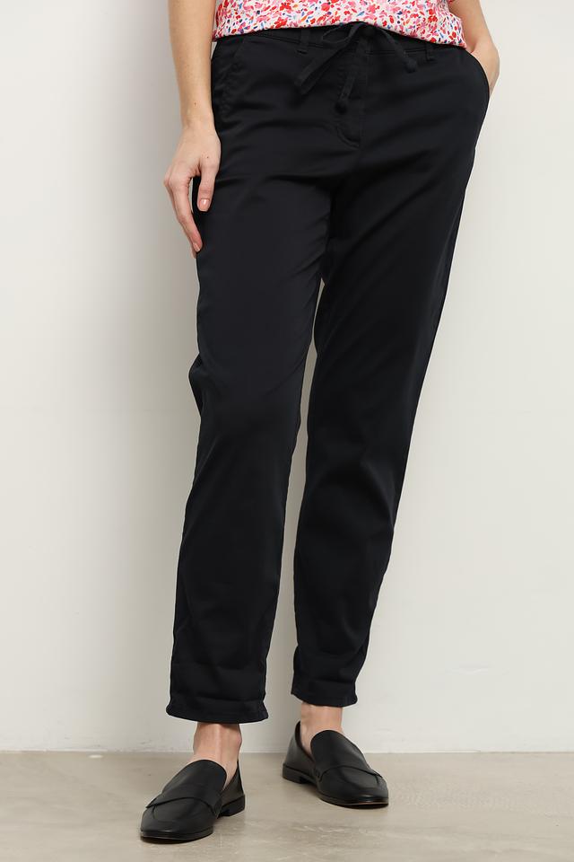 Чёрные брюки от Gerry Weber – это удобная и стильная модель с завязками на талии. Изготовлены из органического хлопка с добавлением эластана, обеспечивающего комфорт при носке и свободу движений. Состав: хлопок органич. 96%, эластан 4%