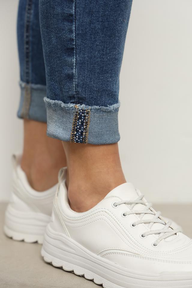 Джинсы имеют классический крой, который подчеркивает фигуру, но при этом обеспечивает комфорт при носке. Декоративные элементы в виде небольших потертостей и сдержанного дизайна карманов добавляют им изюминку.